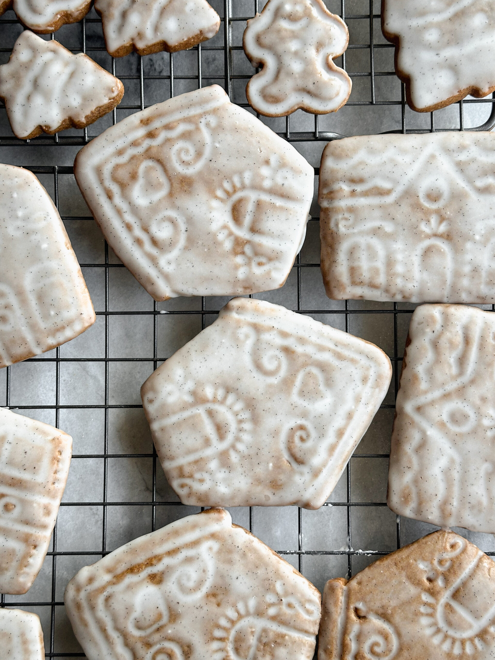 • cookie stamps– There are so many options for cookie stamps out there, but my favorites are Nordic Ware. You could also use plunger impression cutters or an embossed rolling pin.