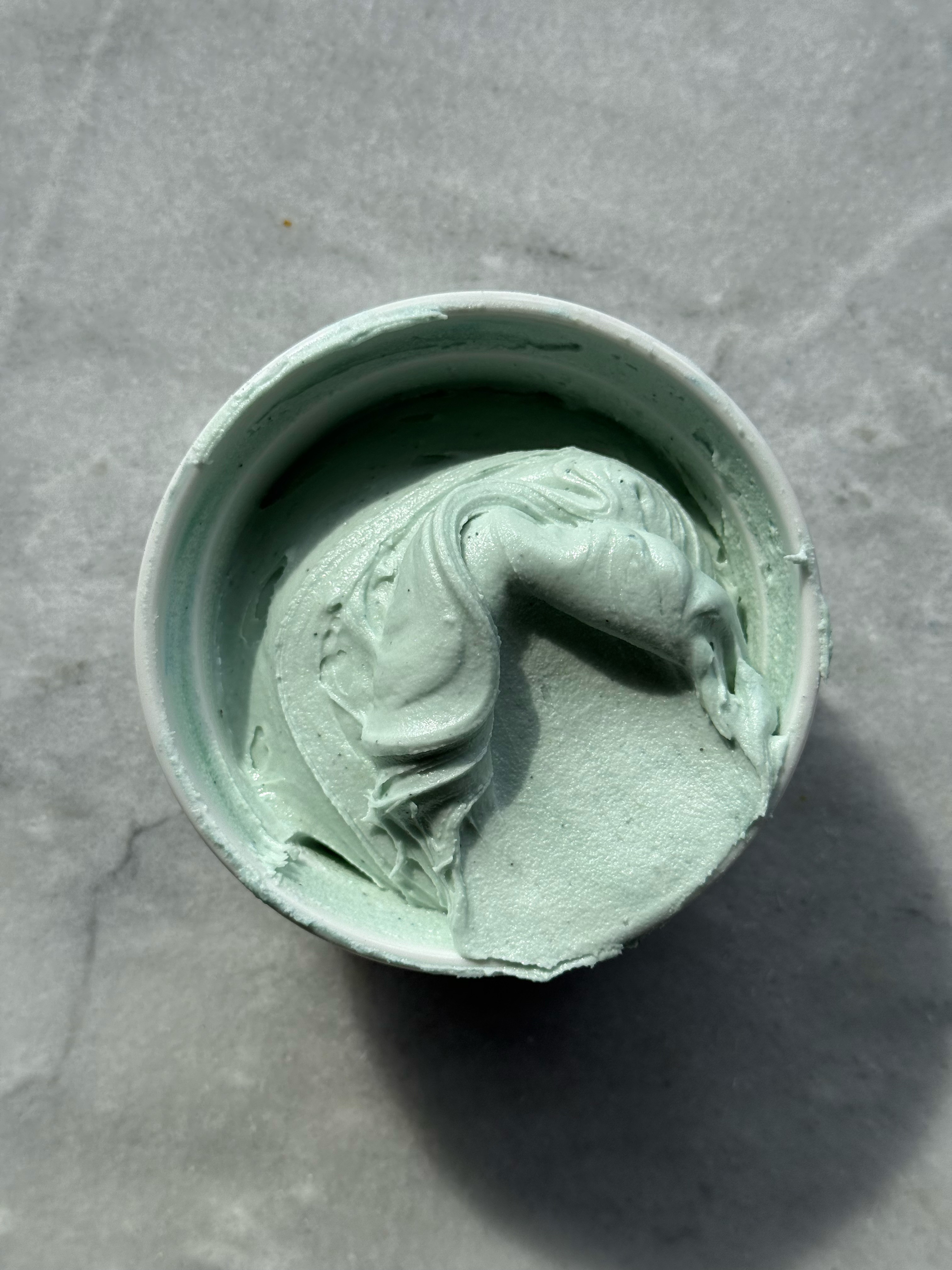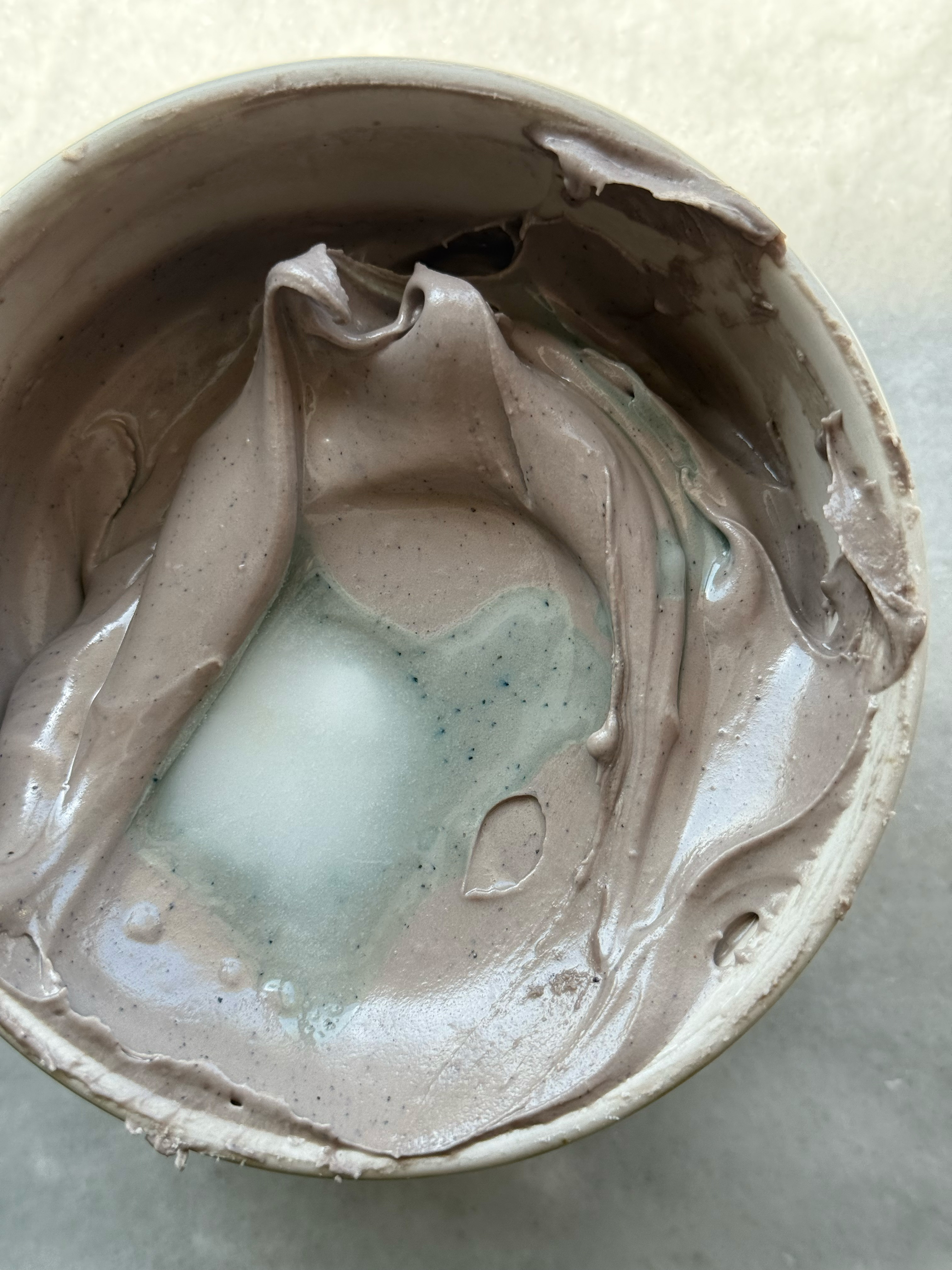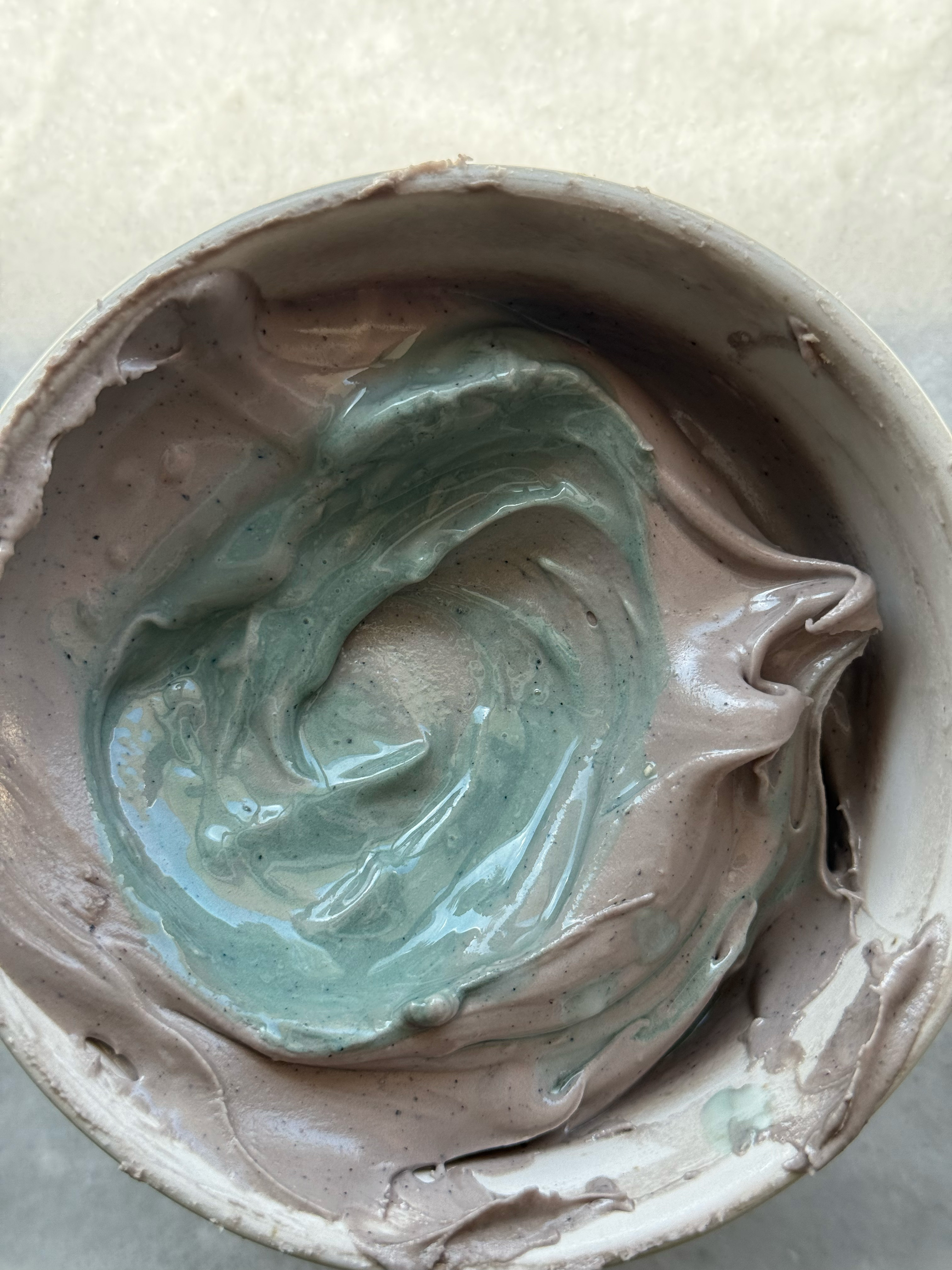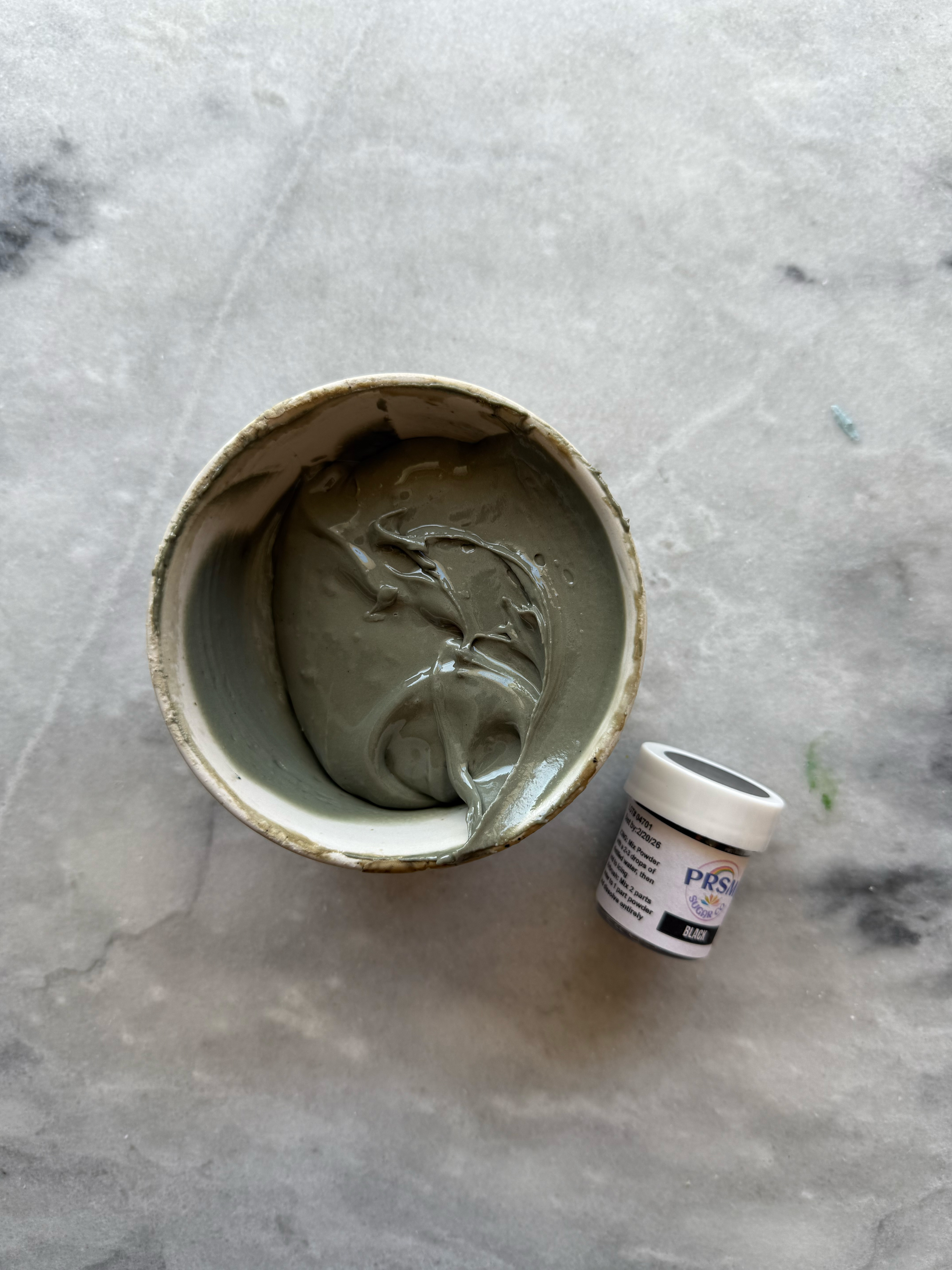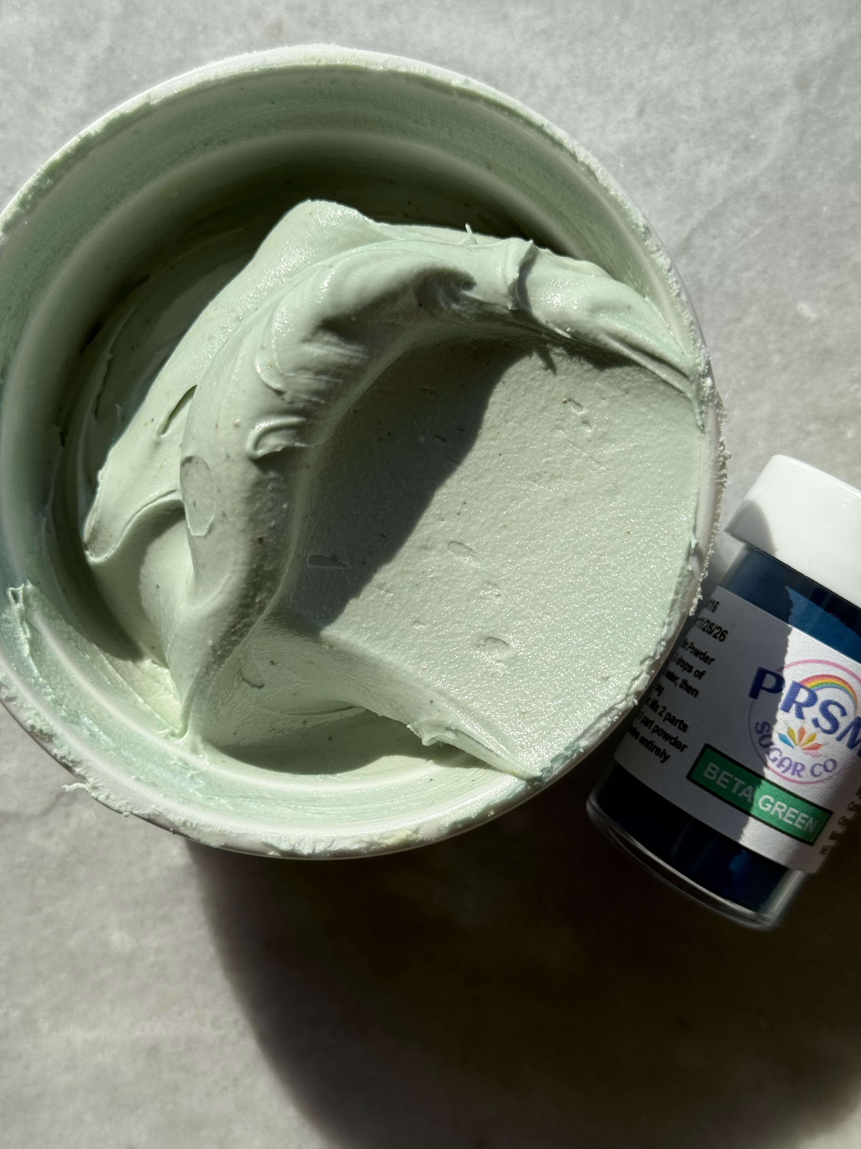 This green is unique and gorgeous. The perfect sage green. I noticed while mixing this color that the yellow granules do not hydrate as quickly, so as this color sits and develops, those yellow granules hydrate. This means that the color turns more green as it sits. It starts out very blue-toned, and gradually turns into a more true green, while still being blue-toned and muted. Stunning.
