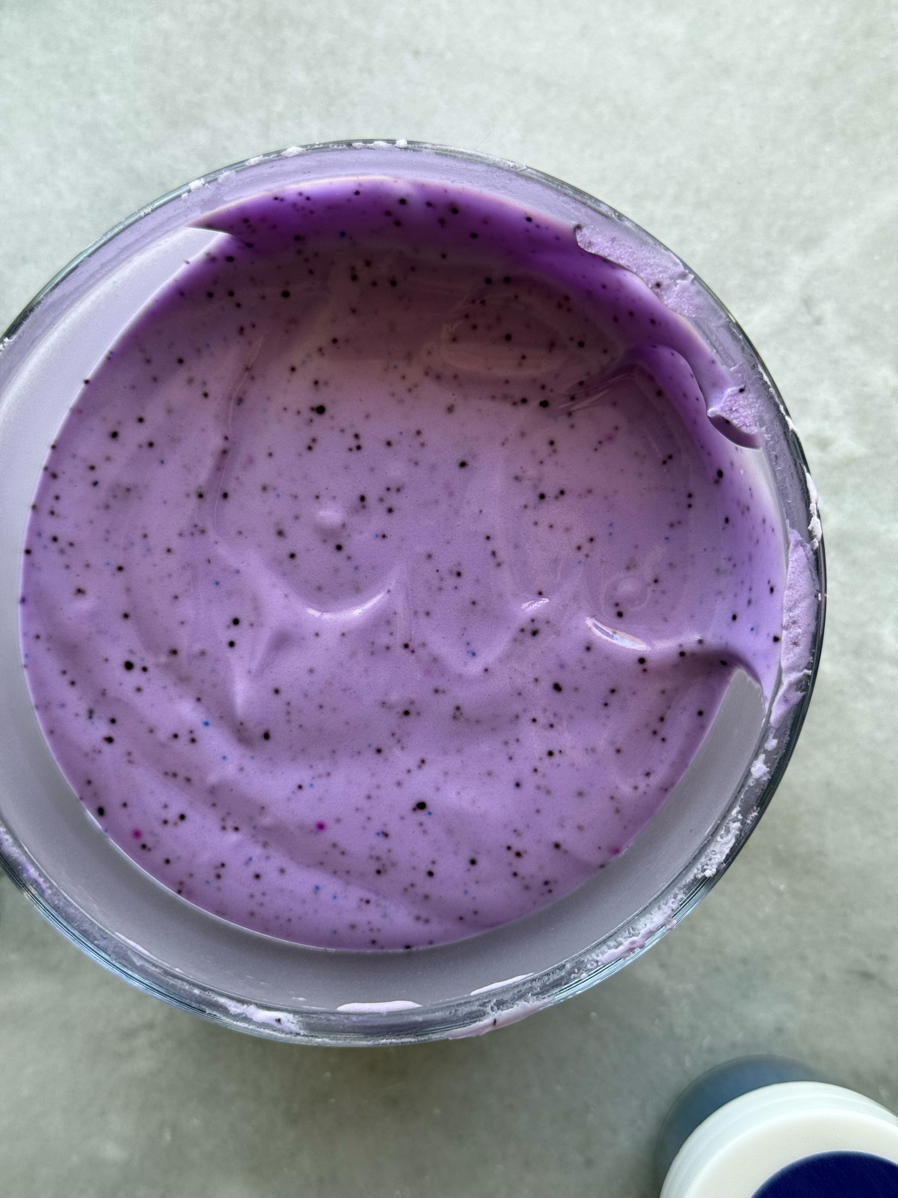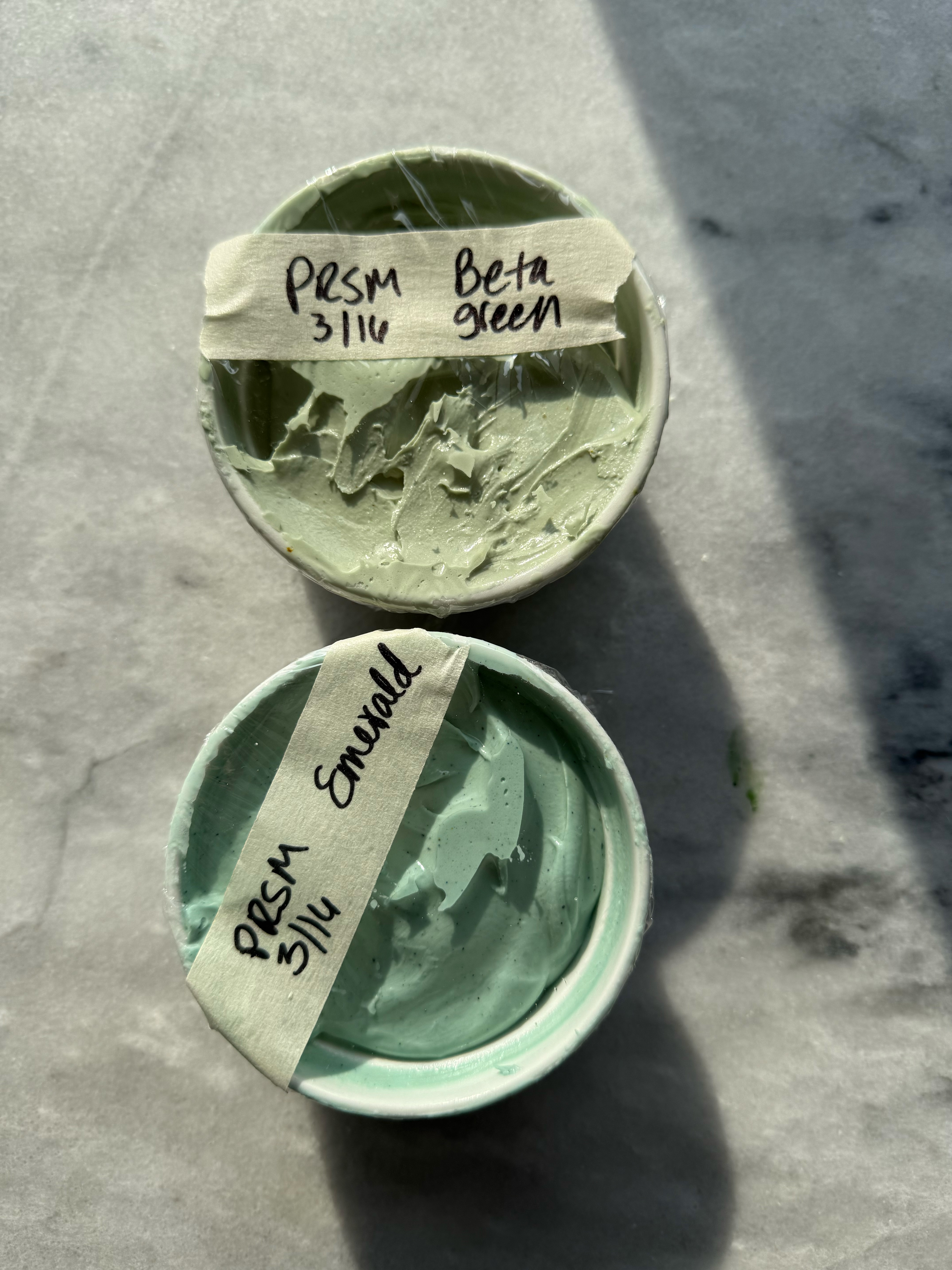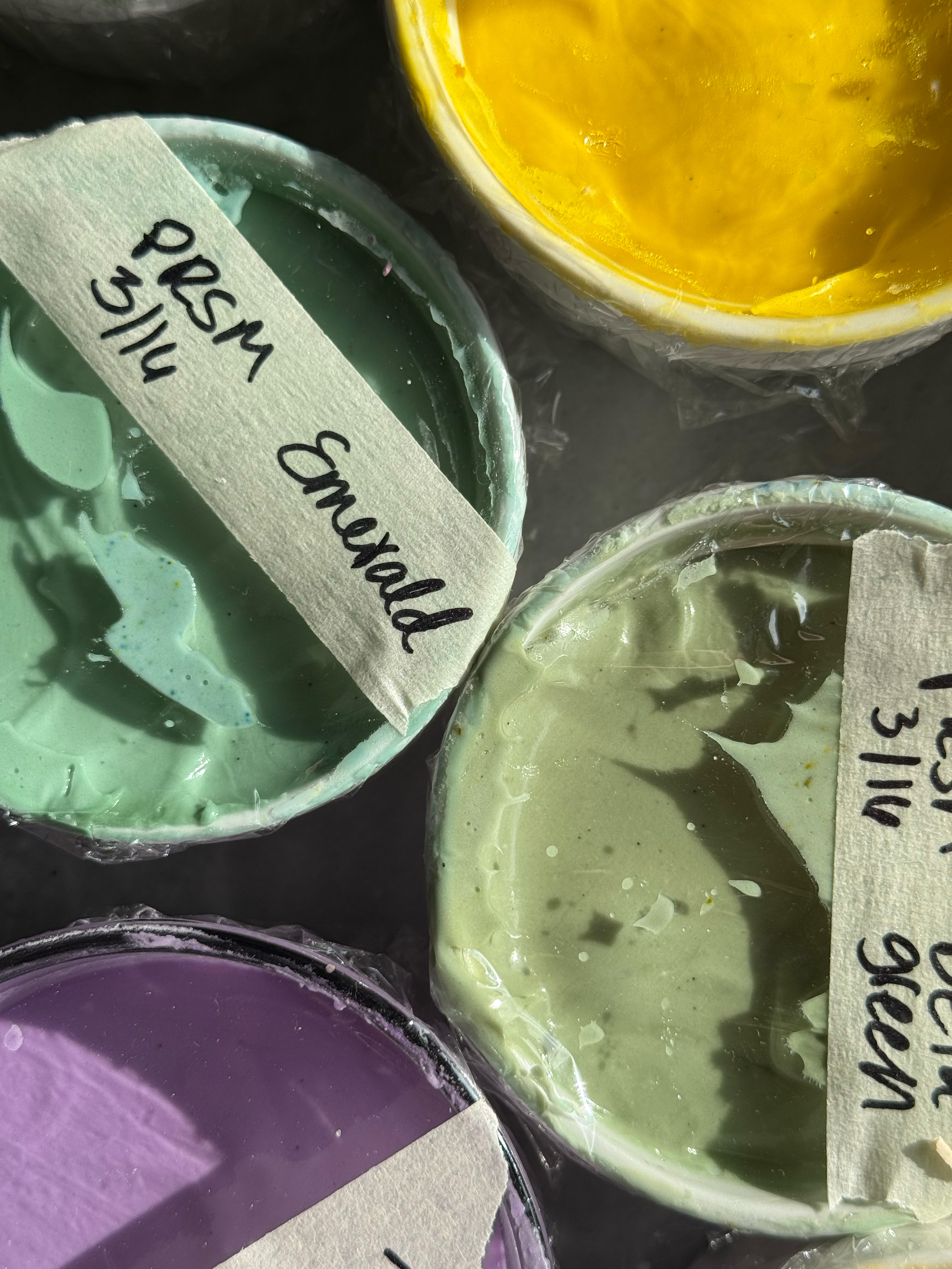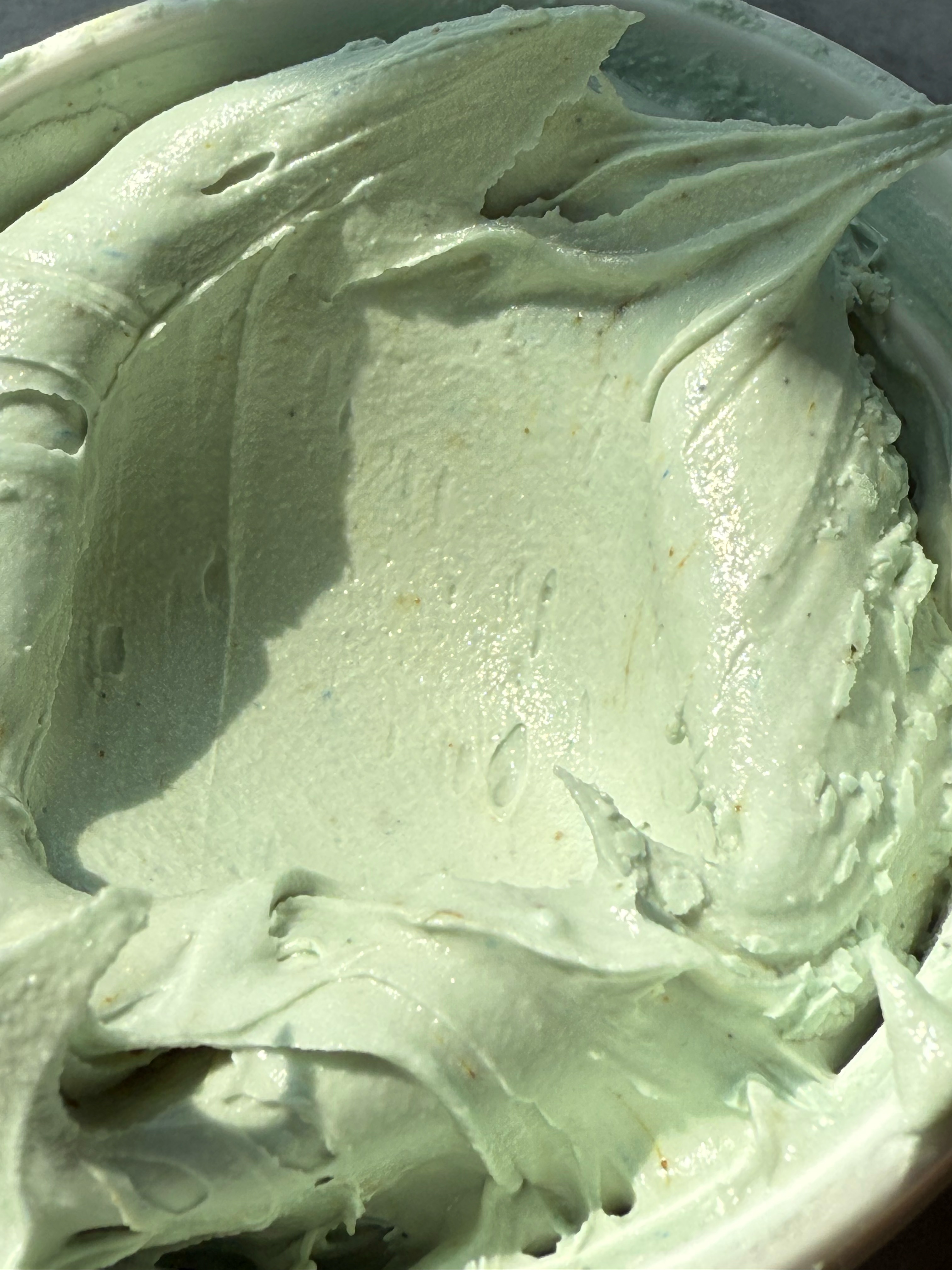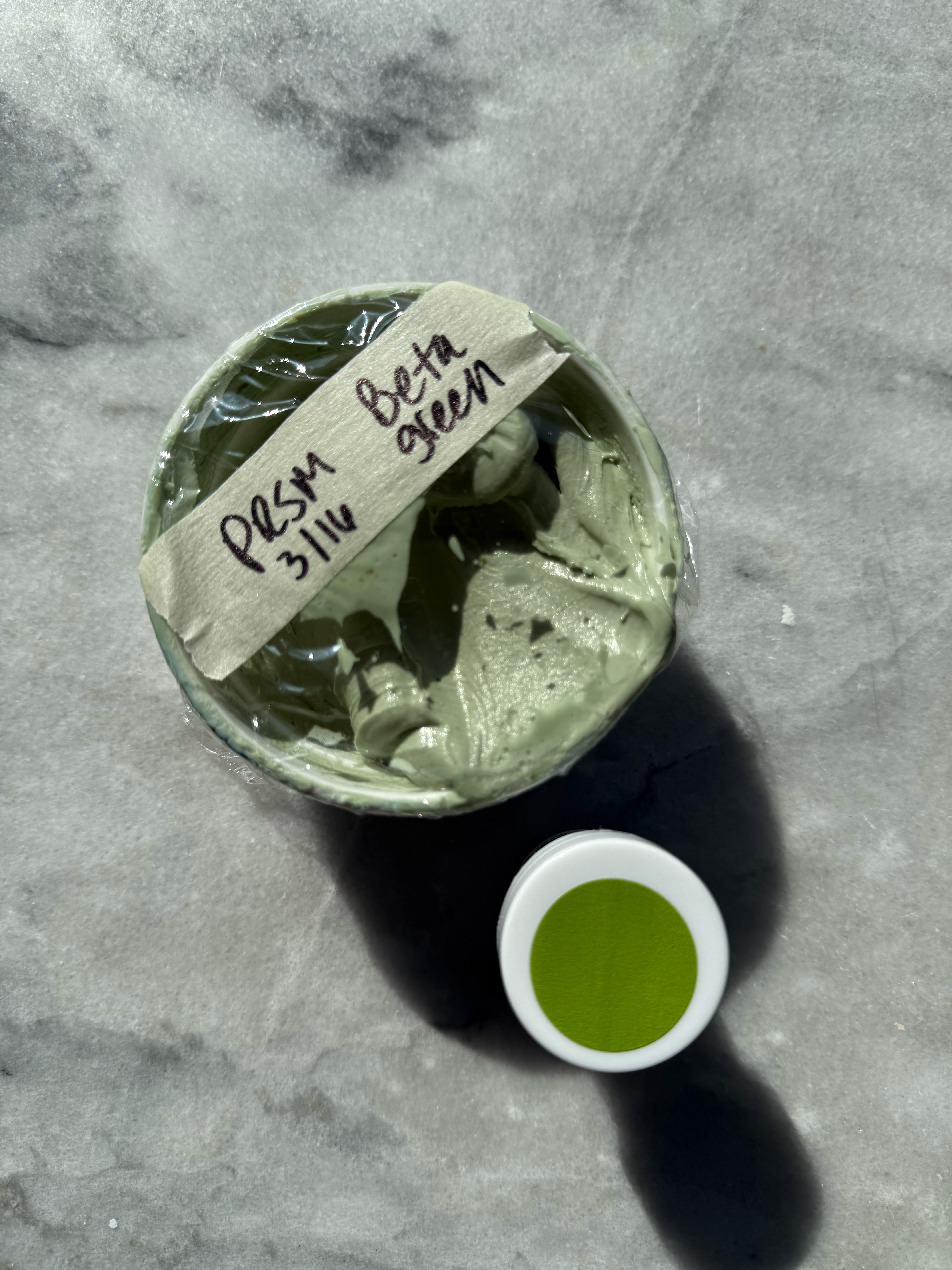 This green is unique and gorgeous. The perfect sage green. I noticed while mixing this color that the yellow granules do not hydrate as quickly, so as this color sits and develops, those yellow granules hydrate. This means that the color turns more green as it sits. It starts out very blue-toned, and gradually turns into a more true green, while still being blue-toned and muted. Stunning.