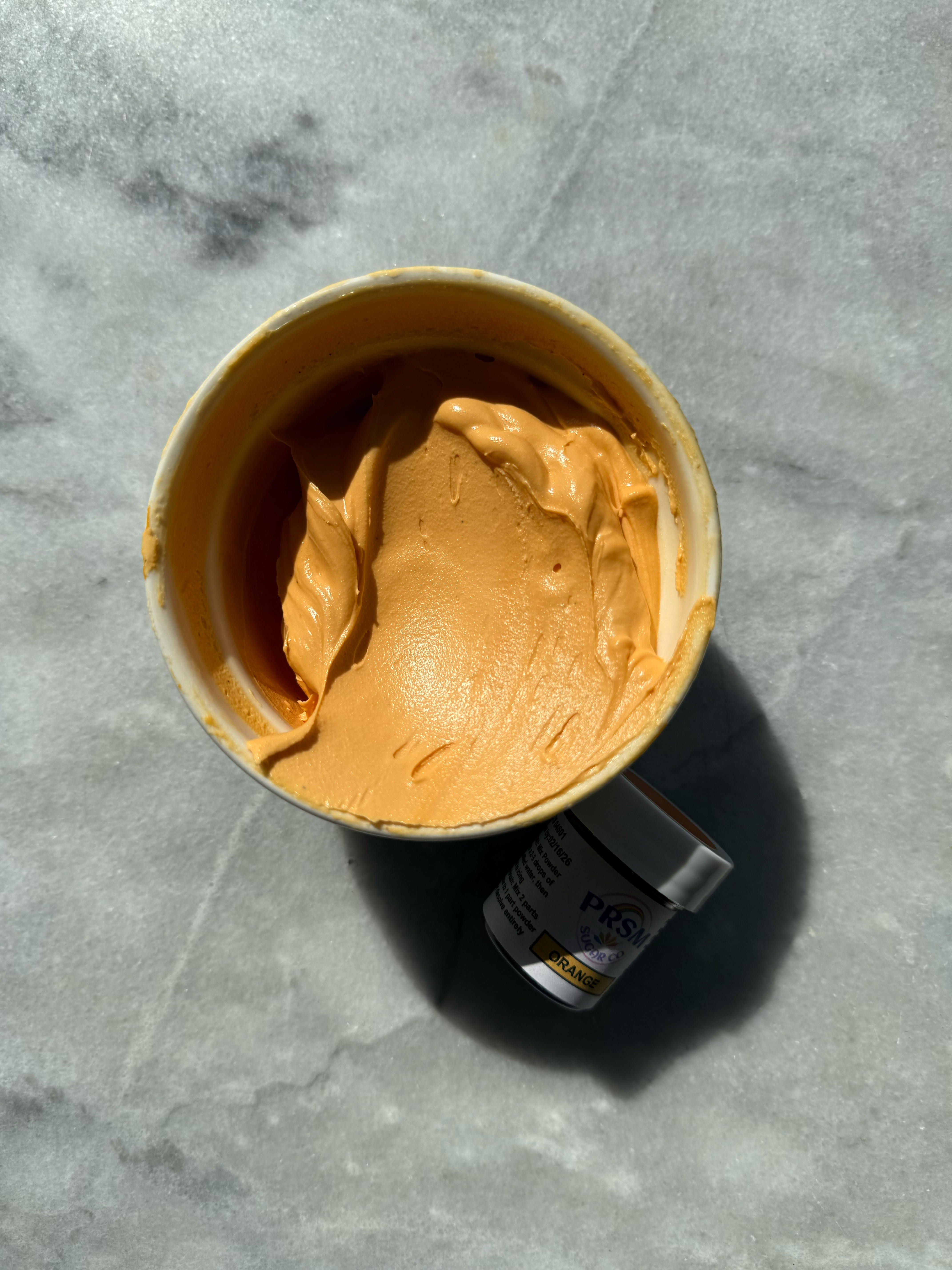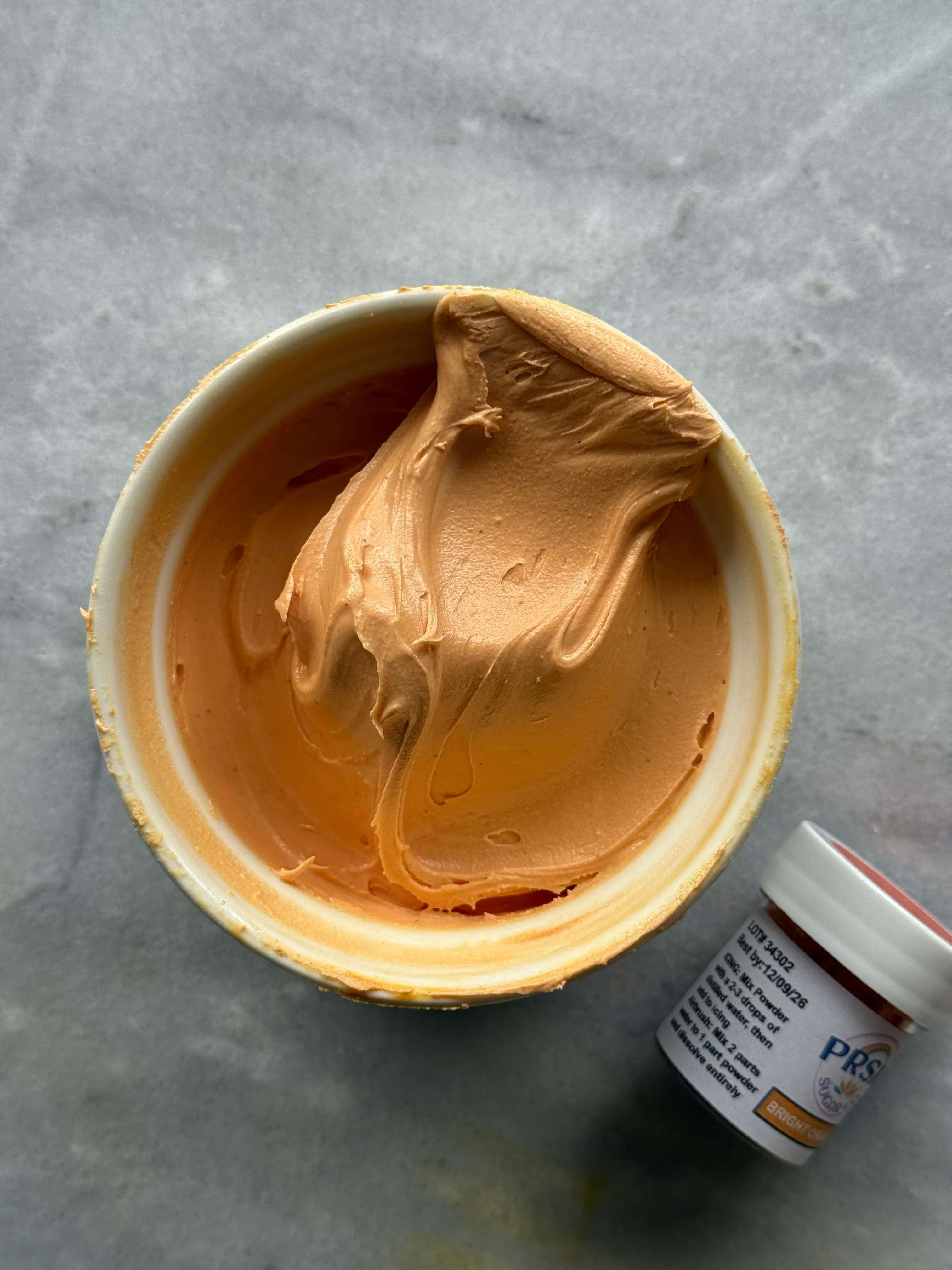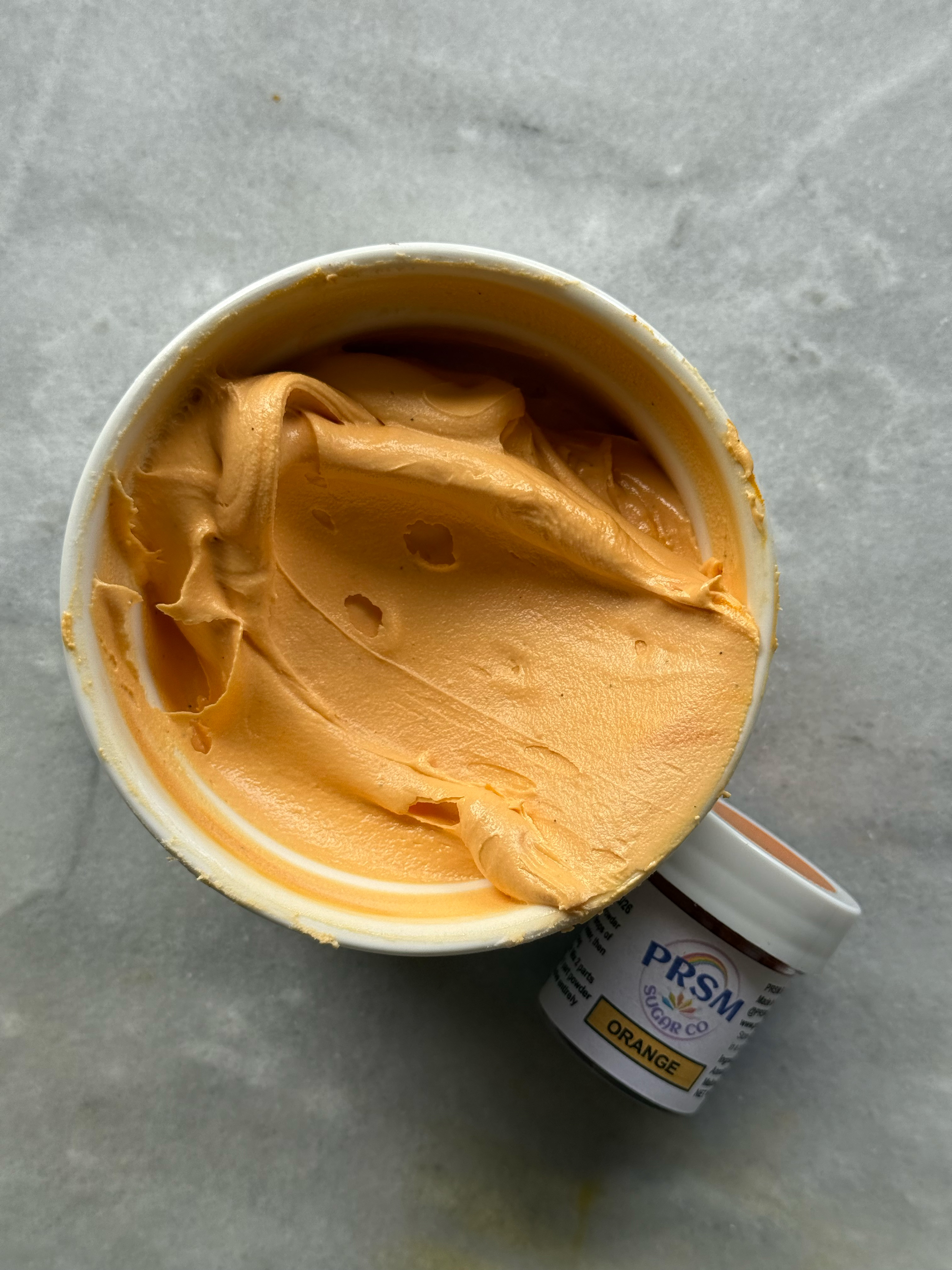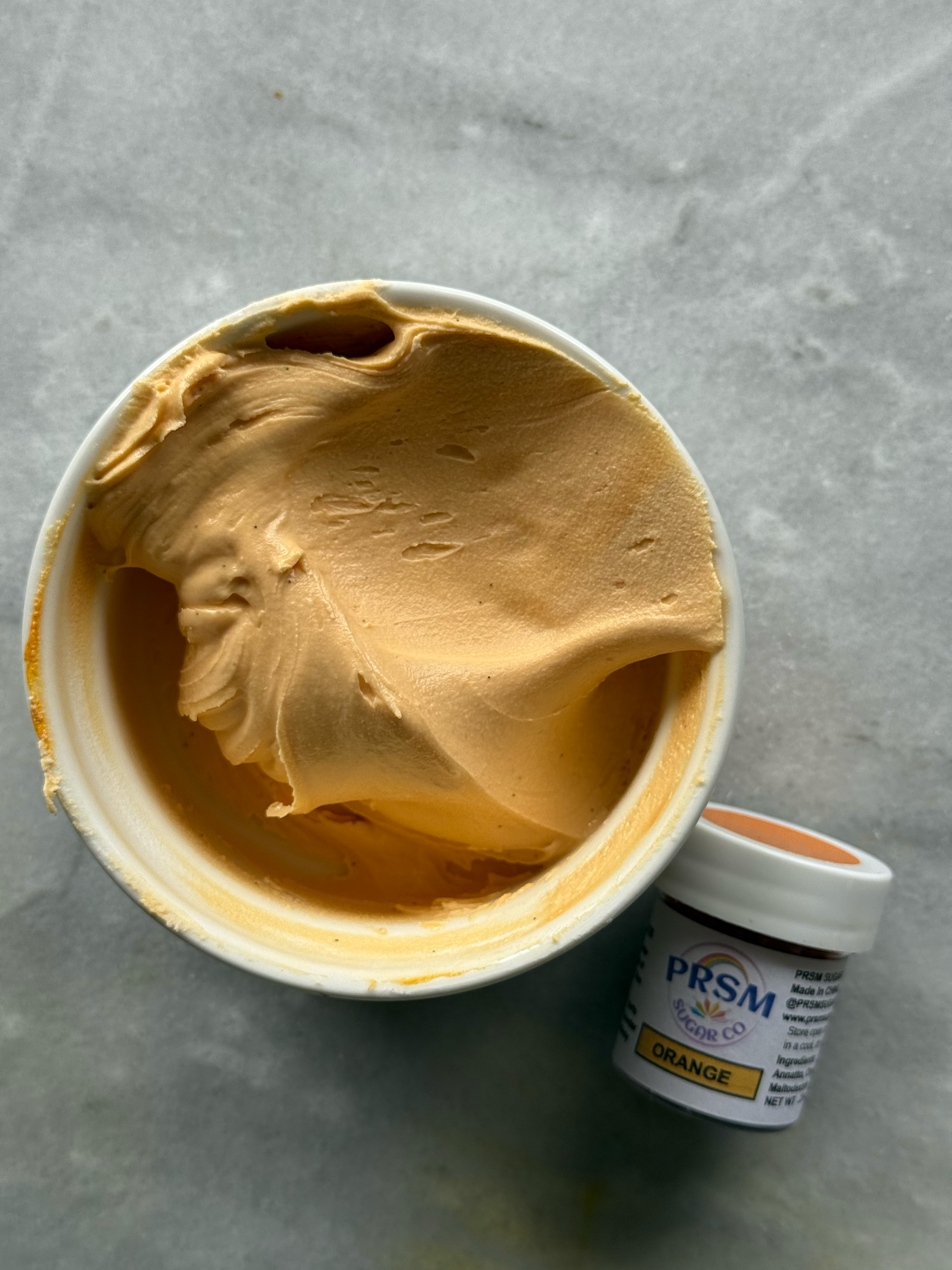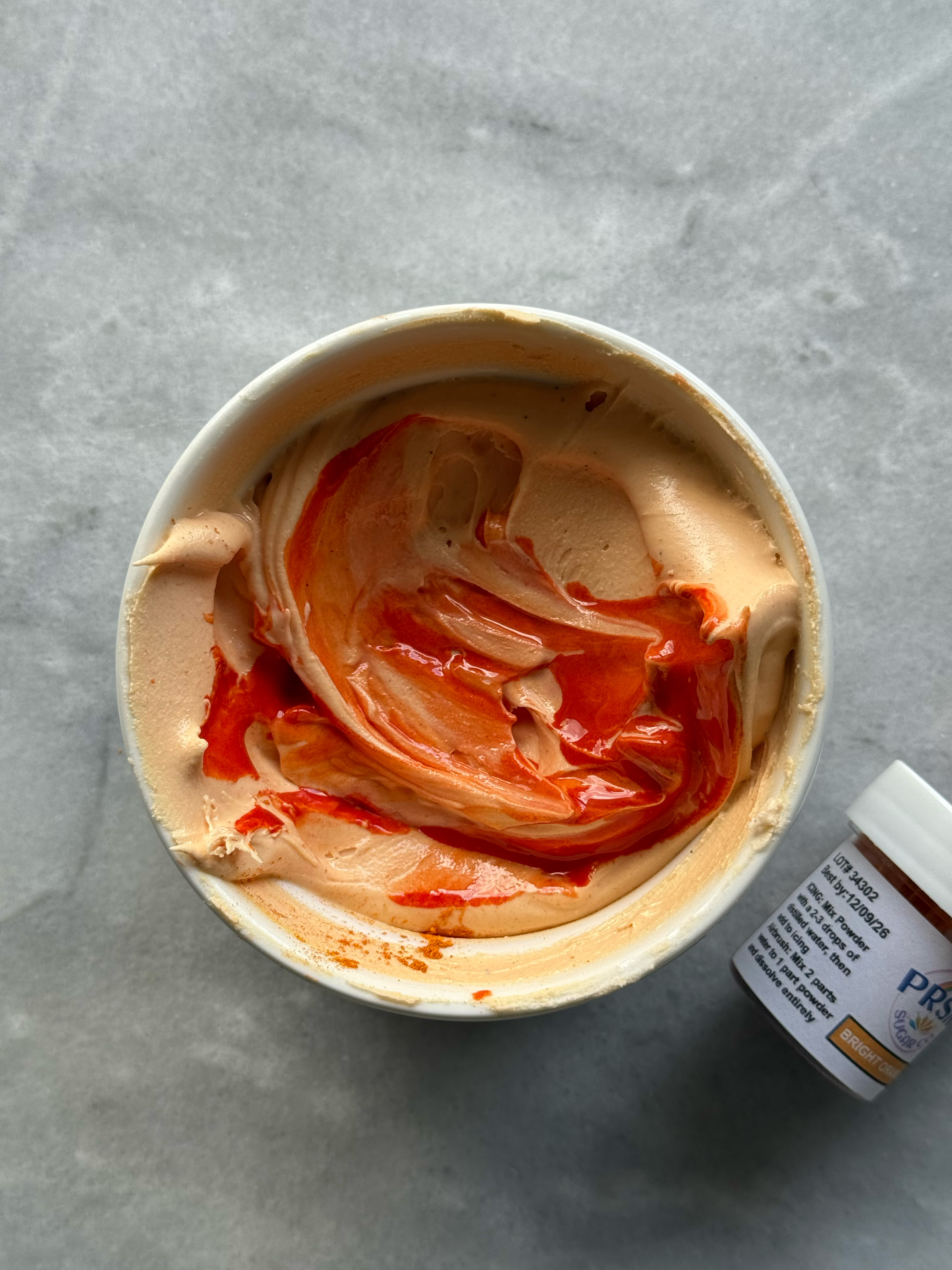This orange is more the classic orange shade. It also did not flavor the icing, despite the strong smell of the powder in the jar. If you had this orange, but wanted it to look more like bright orange, you could warm this color up a bit with a red or pink shade.