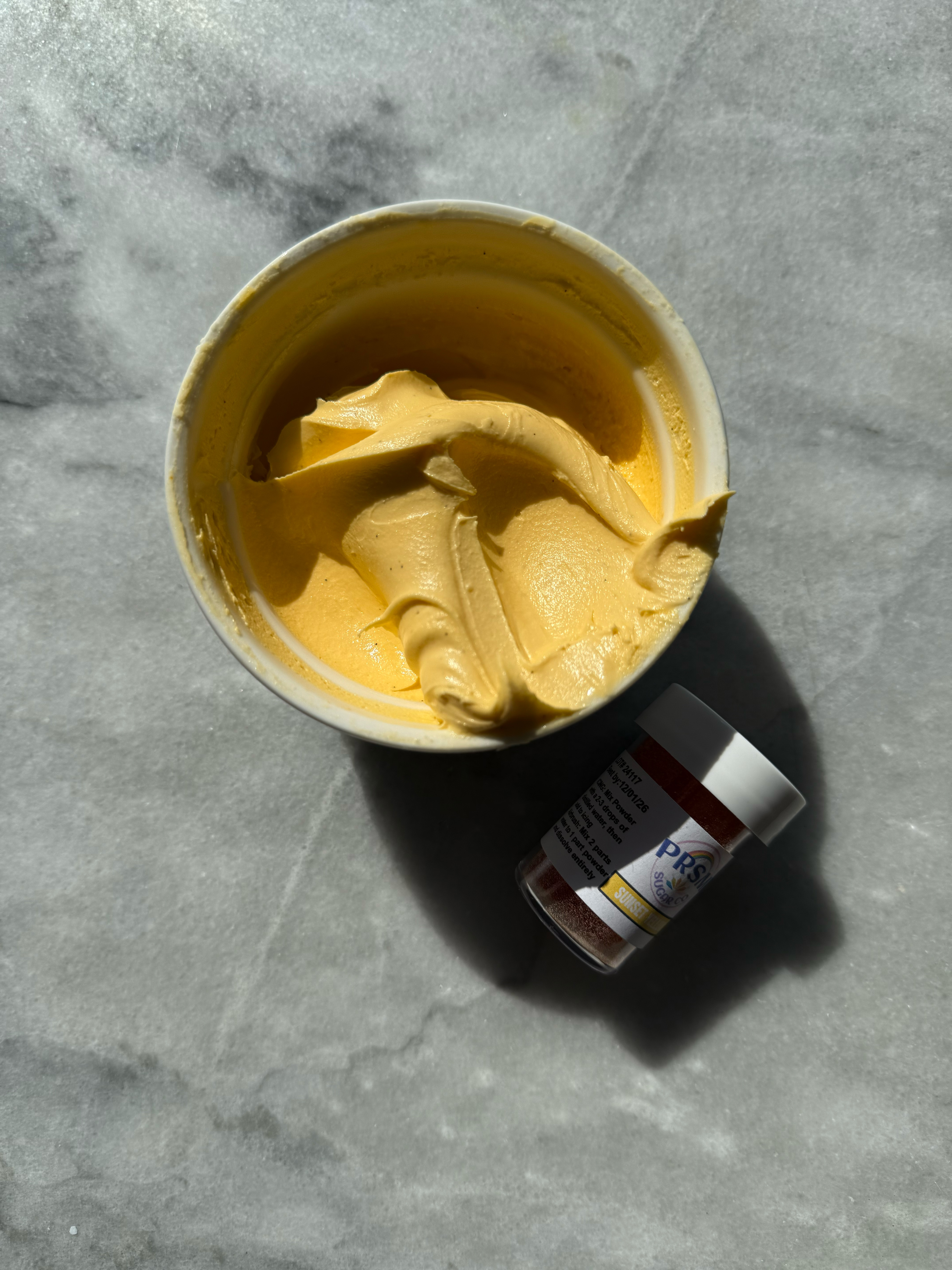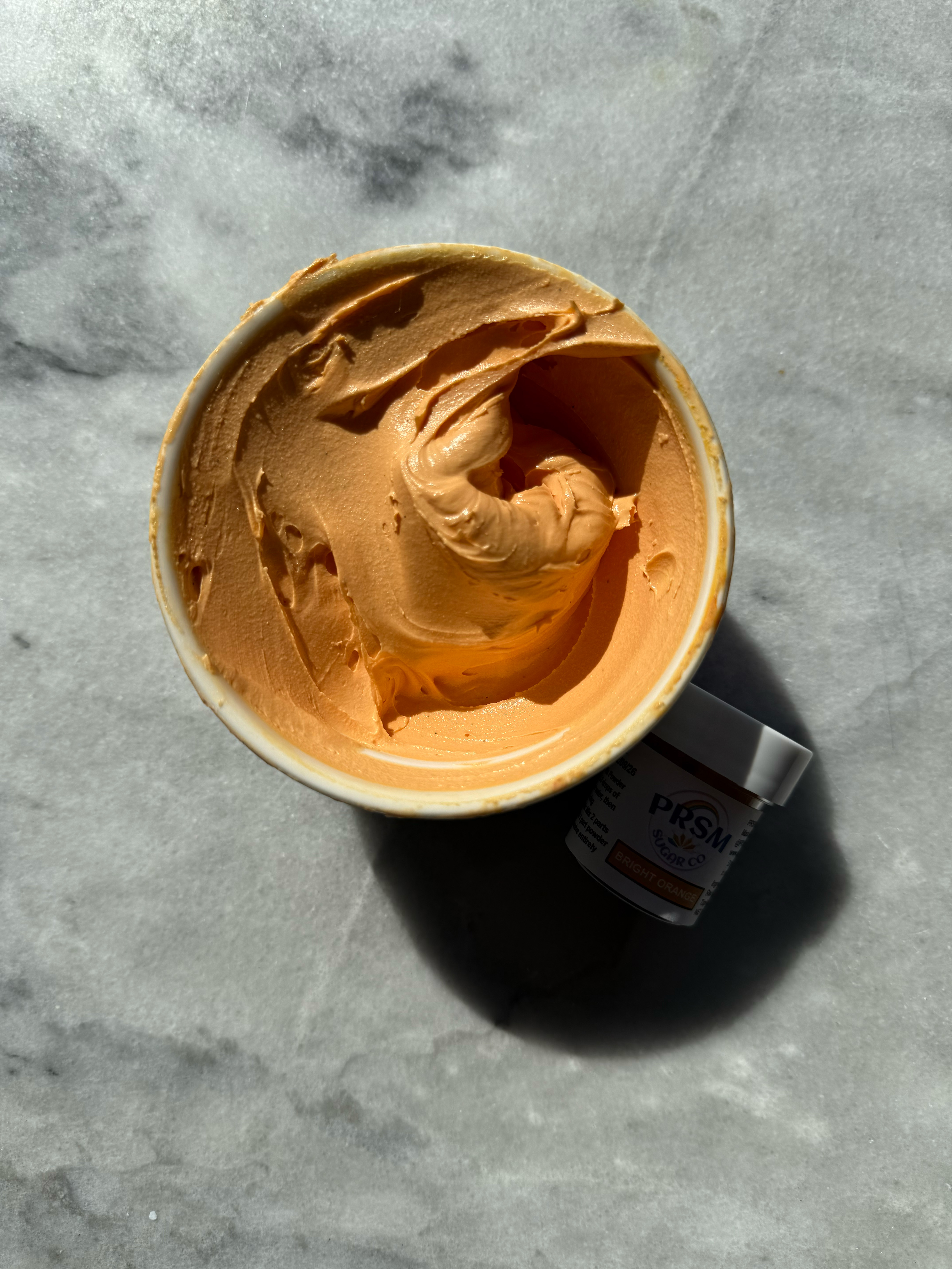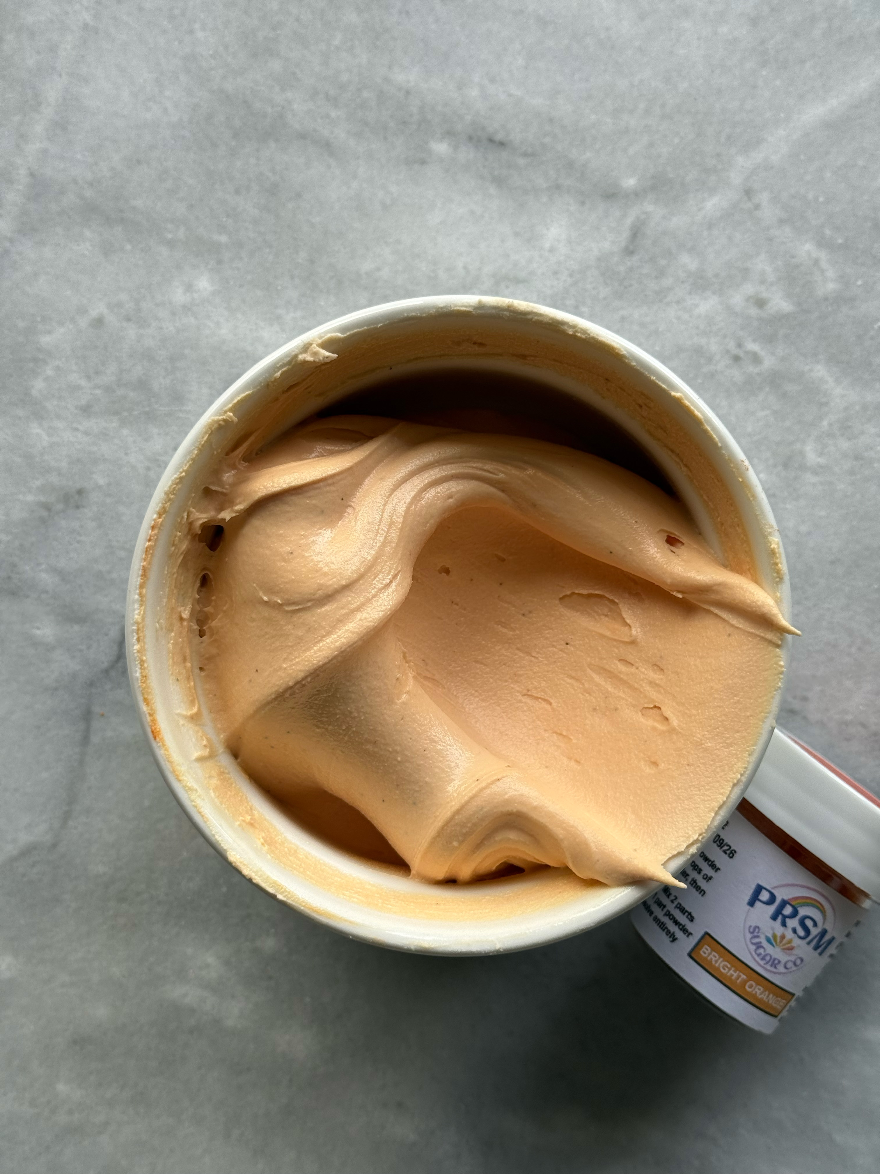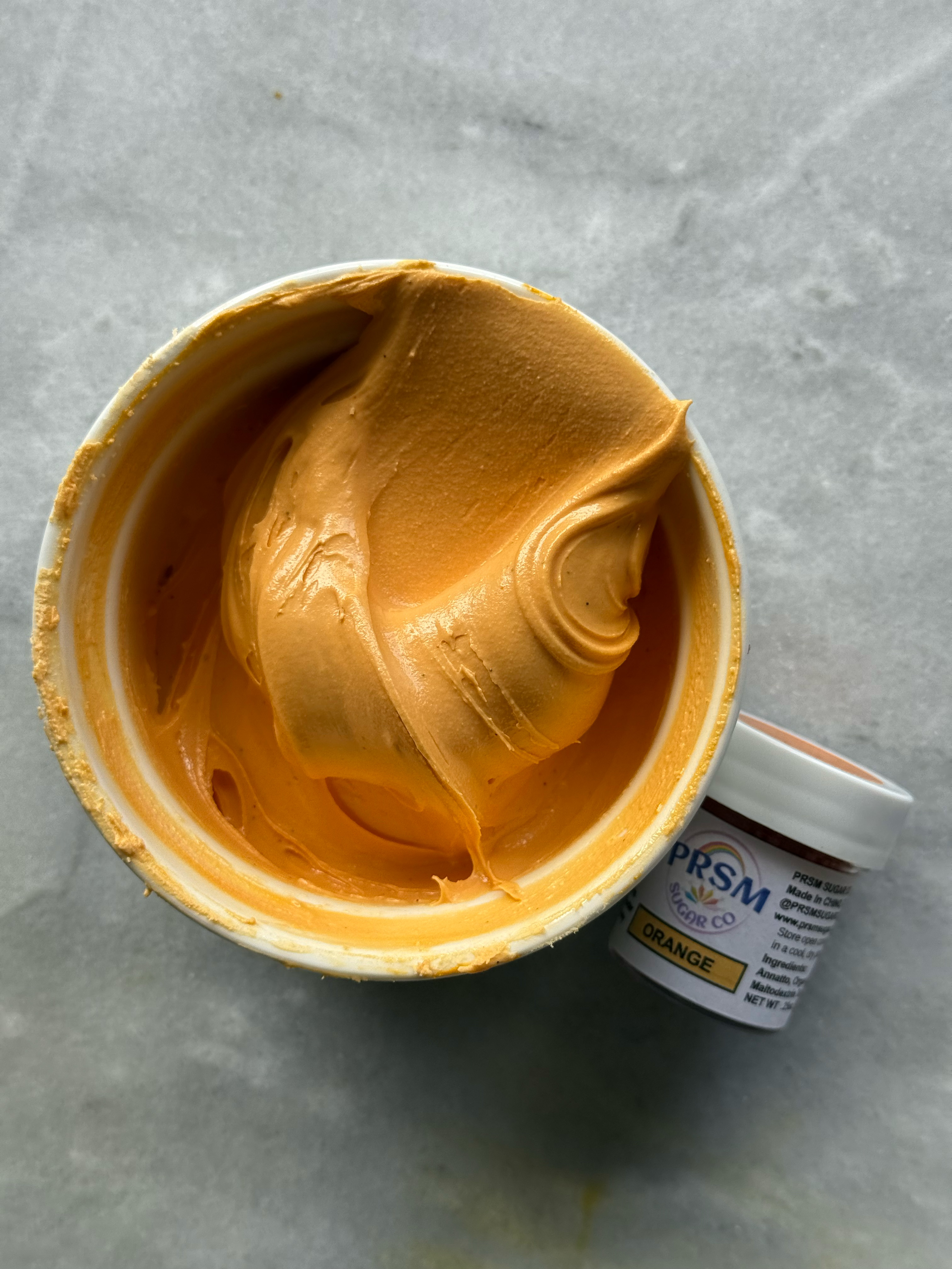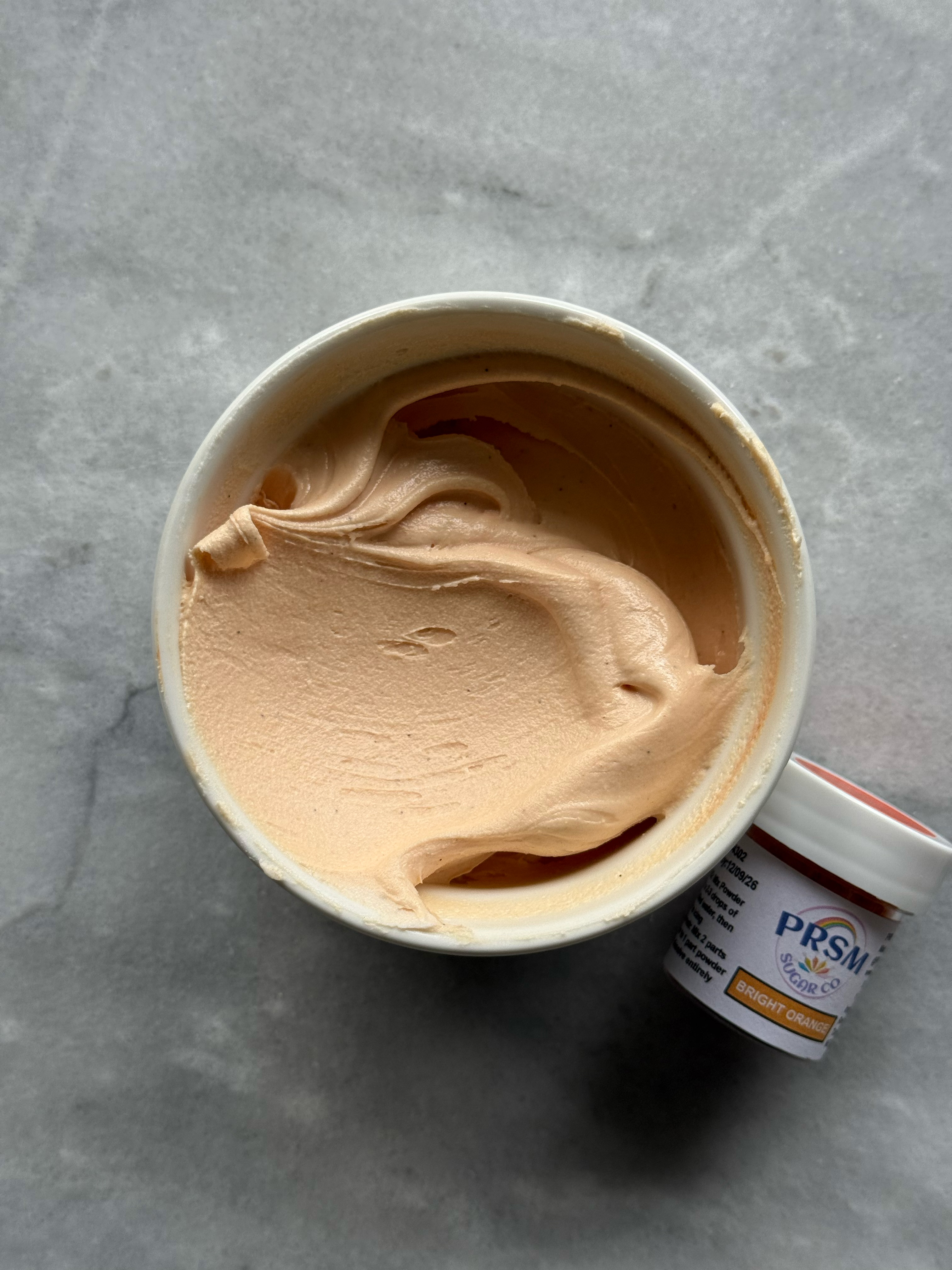 This orange is more the classic orange shade. It also did not flavor the icing, despite the strong smell of the powder in the jar. If you had this orange, but wanted it to look more like bright orange, you could warm this color up a bit with a red or pink shade.