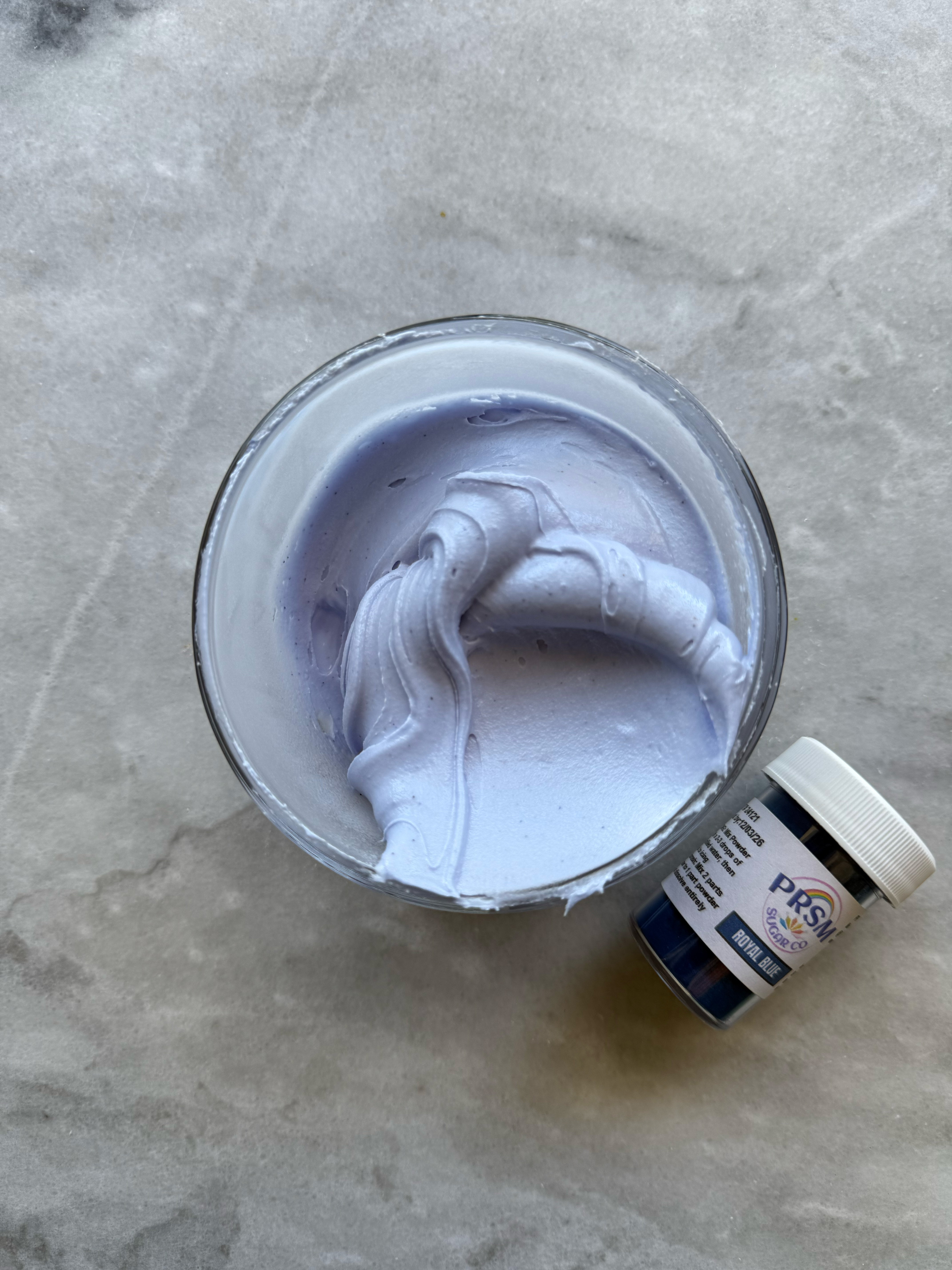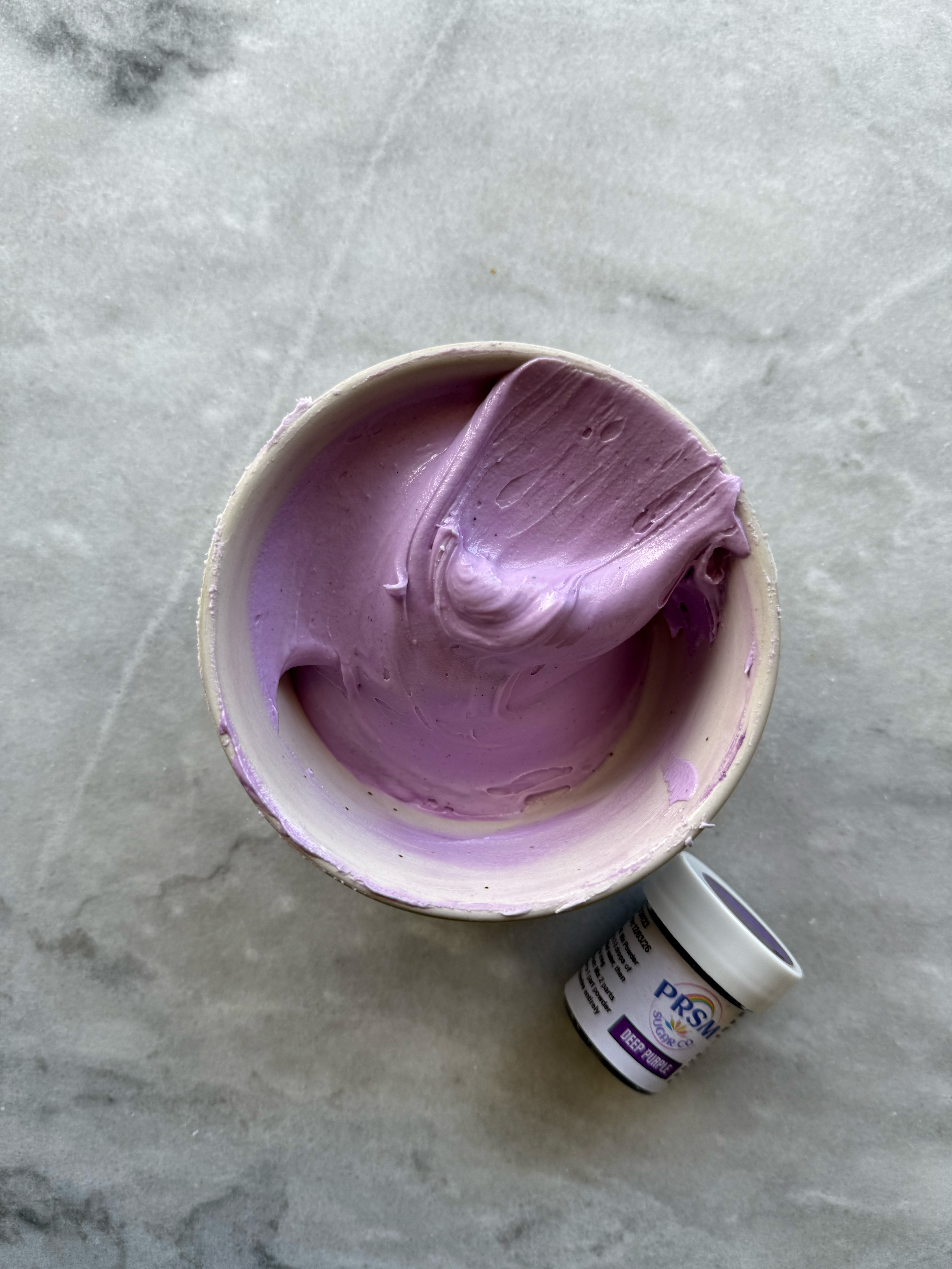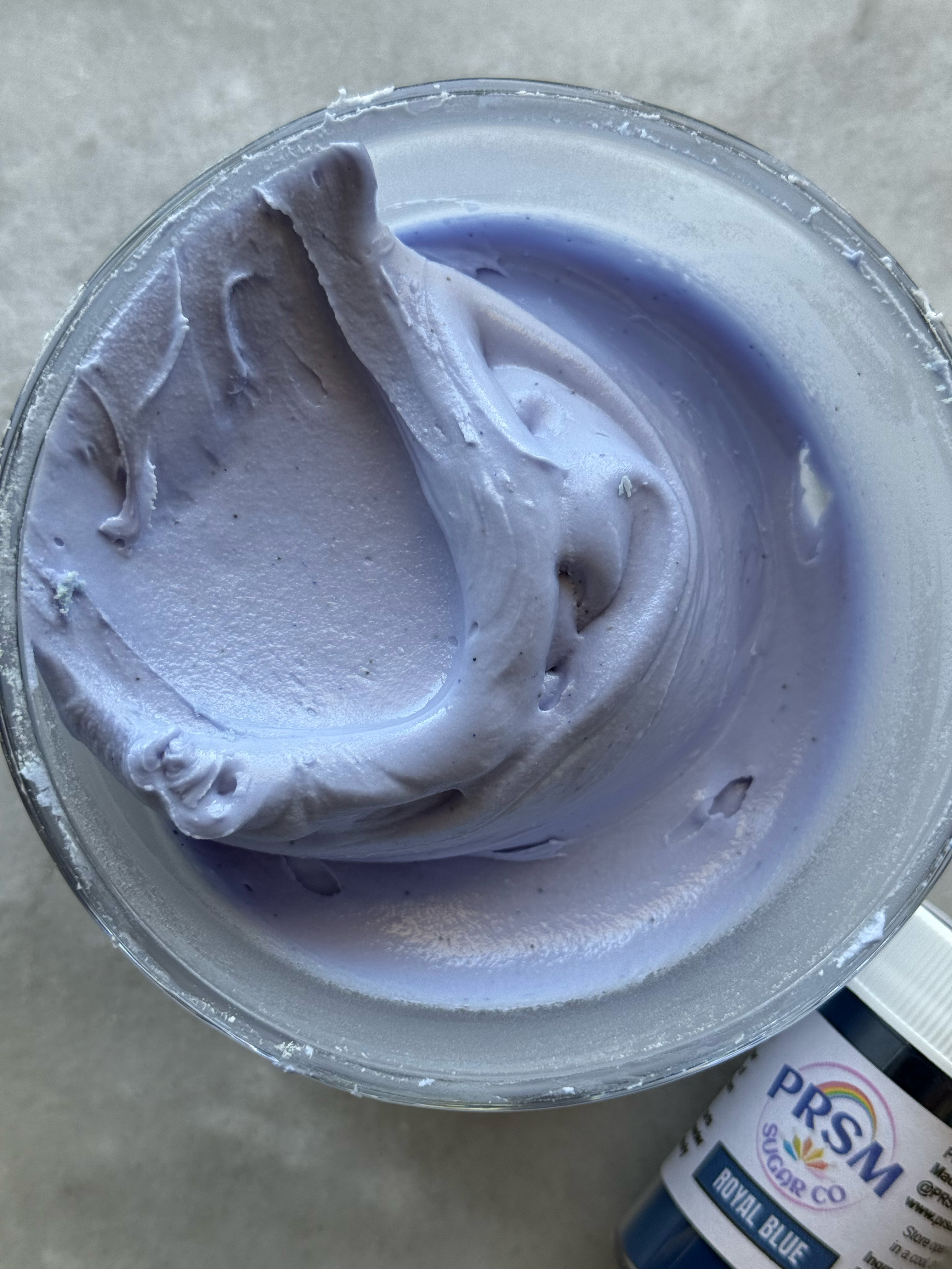 This color was a bit tricky. It starts out very purple, but as you mix and add more powder, it is very blue. However, as it sits and develops, it turned very gray. This one was also very unpredictable for me and every time I used it as a mixing color, the top of the icing would develop differently than the rest.