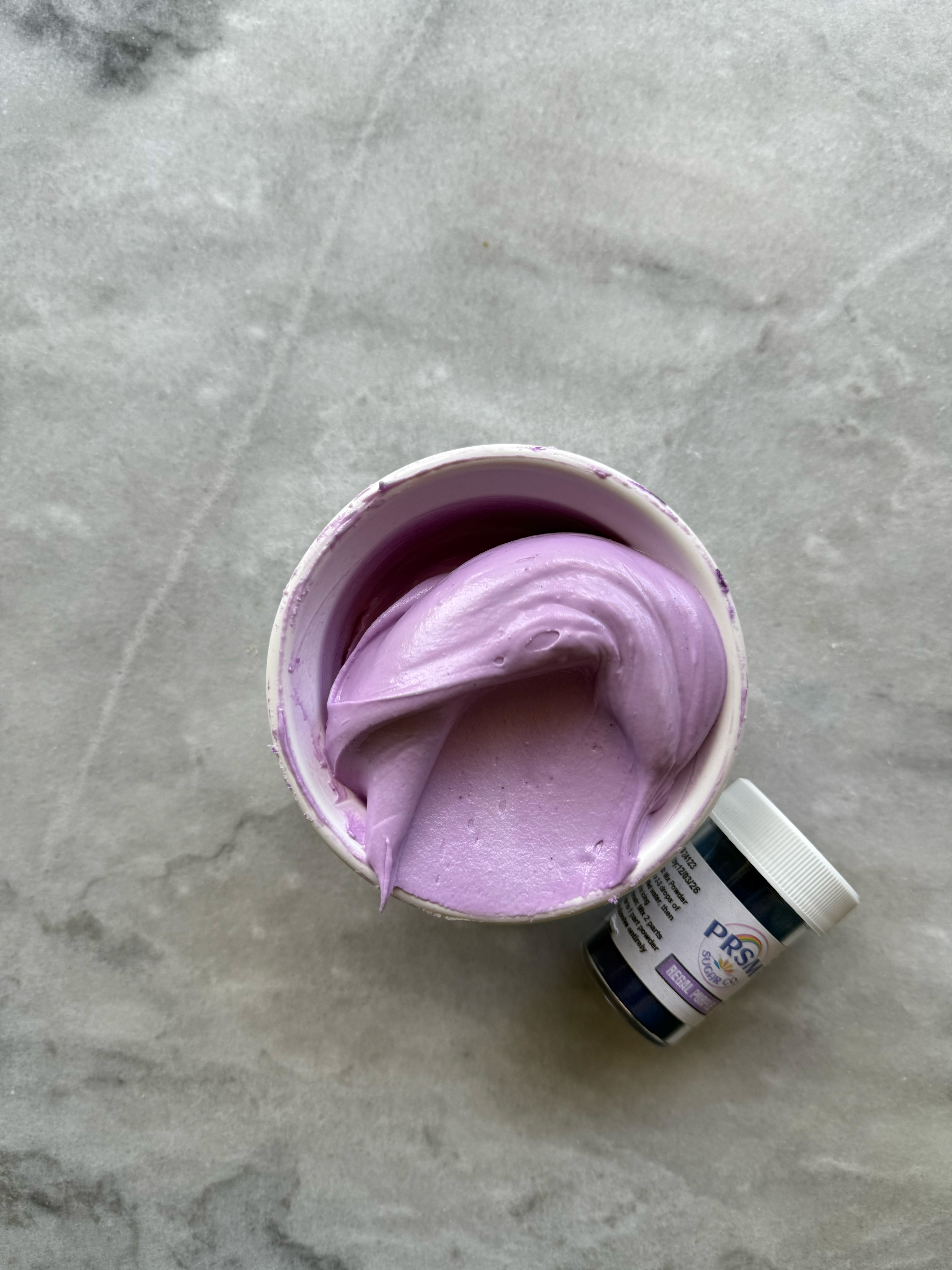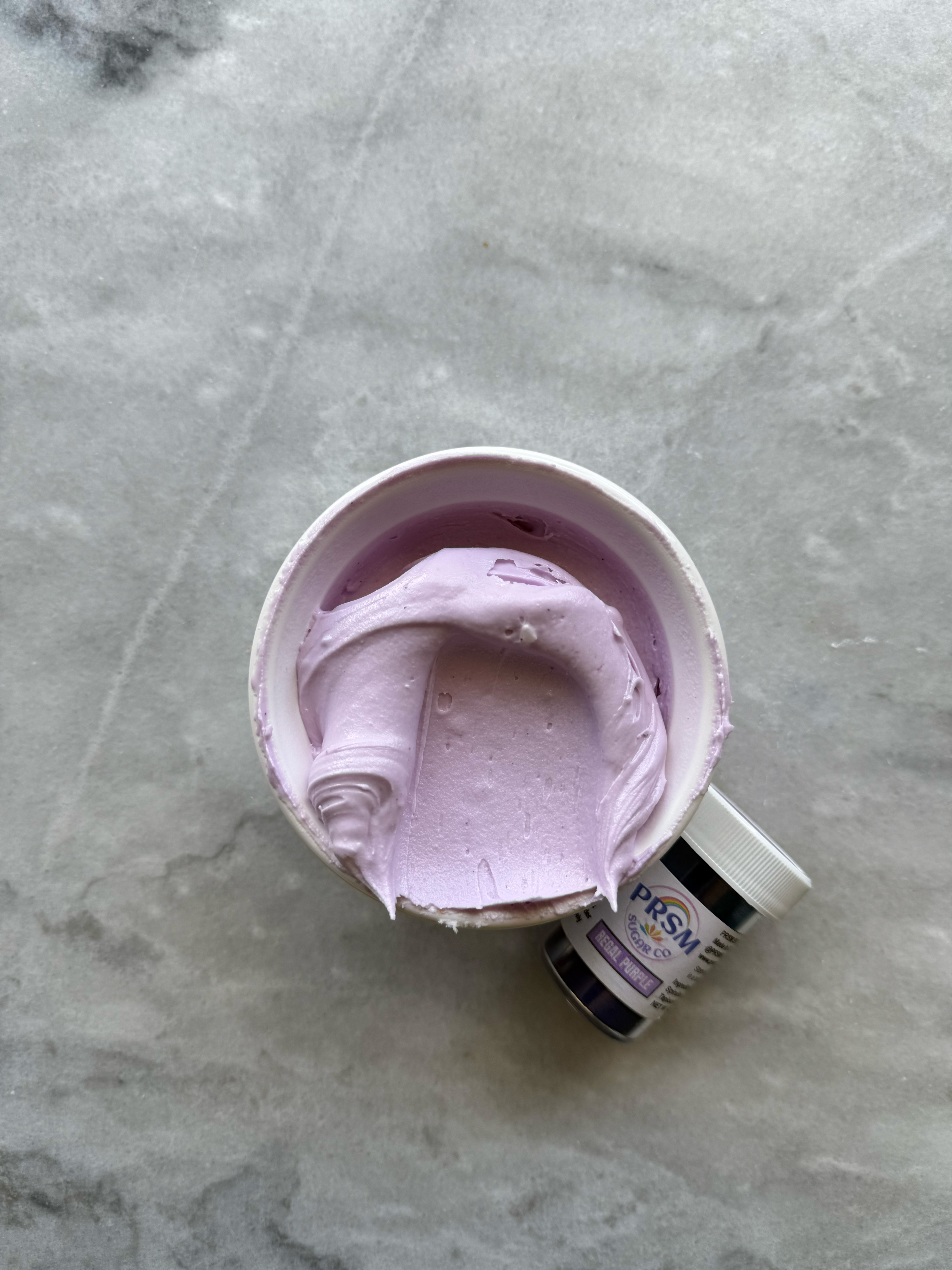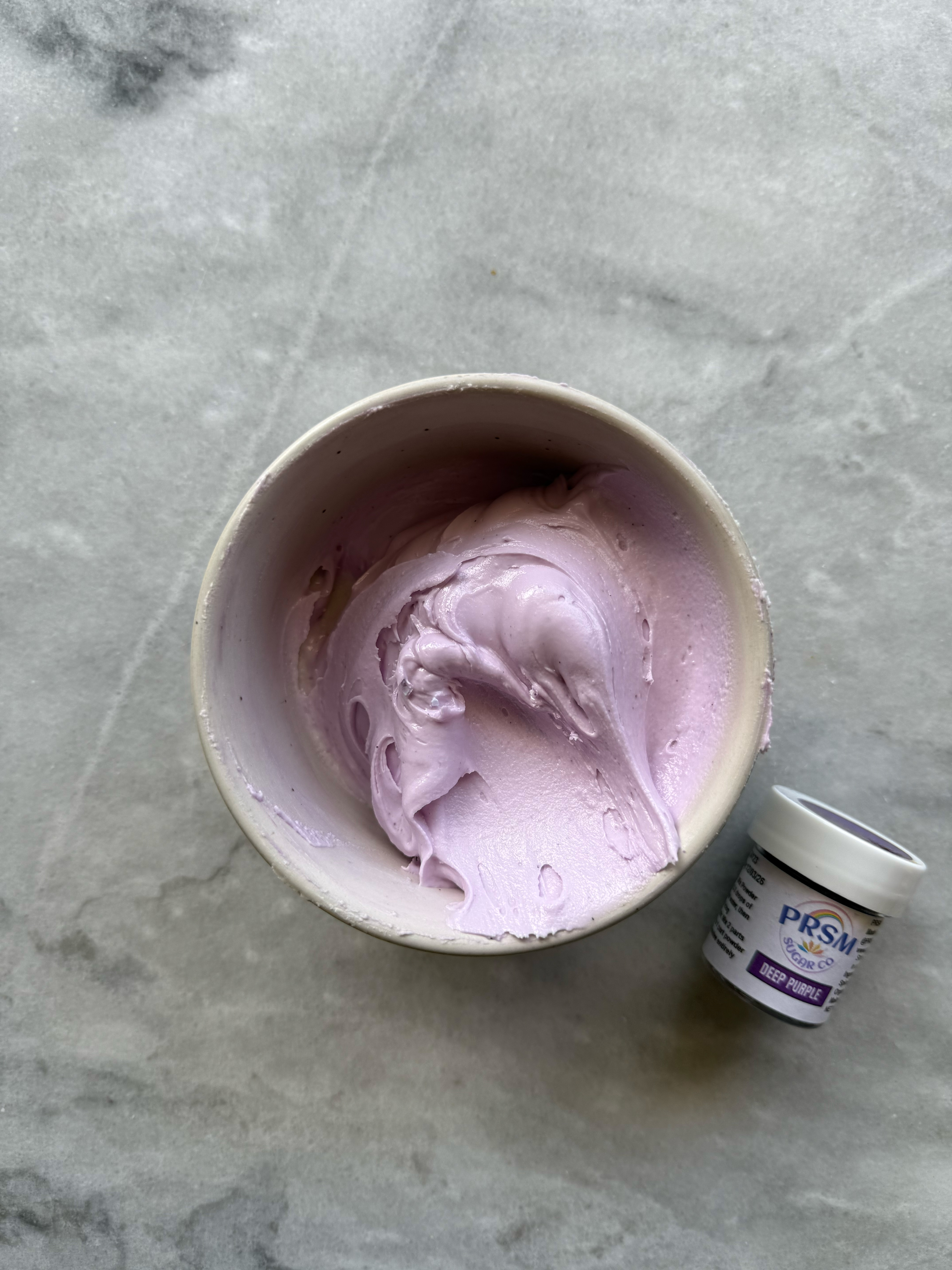 This color was a bit tricky. It starts out very purple, but as you mix and add more powder, it is very blue. However, as it sits and develops, it turned very gray. This one was also very unpredictable for me and every time I used it as a mixing color, the top of the icing would develop differently than the rest.