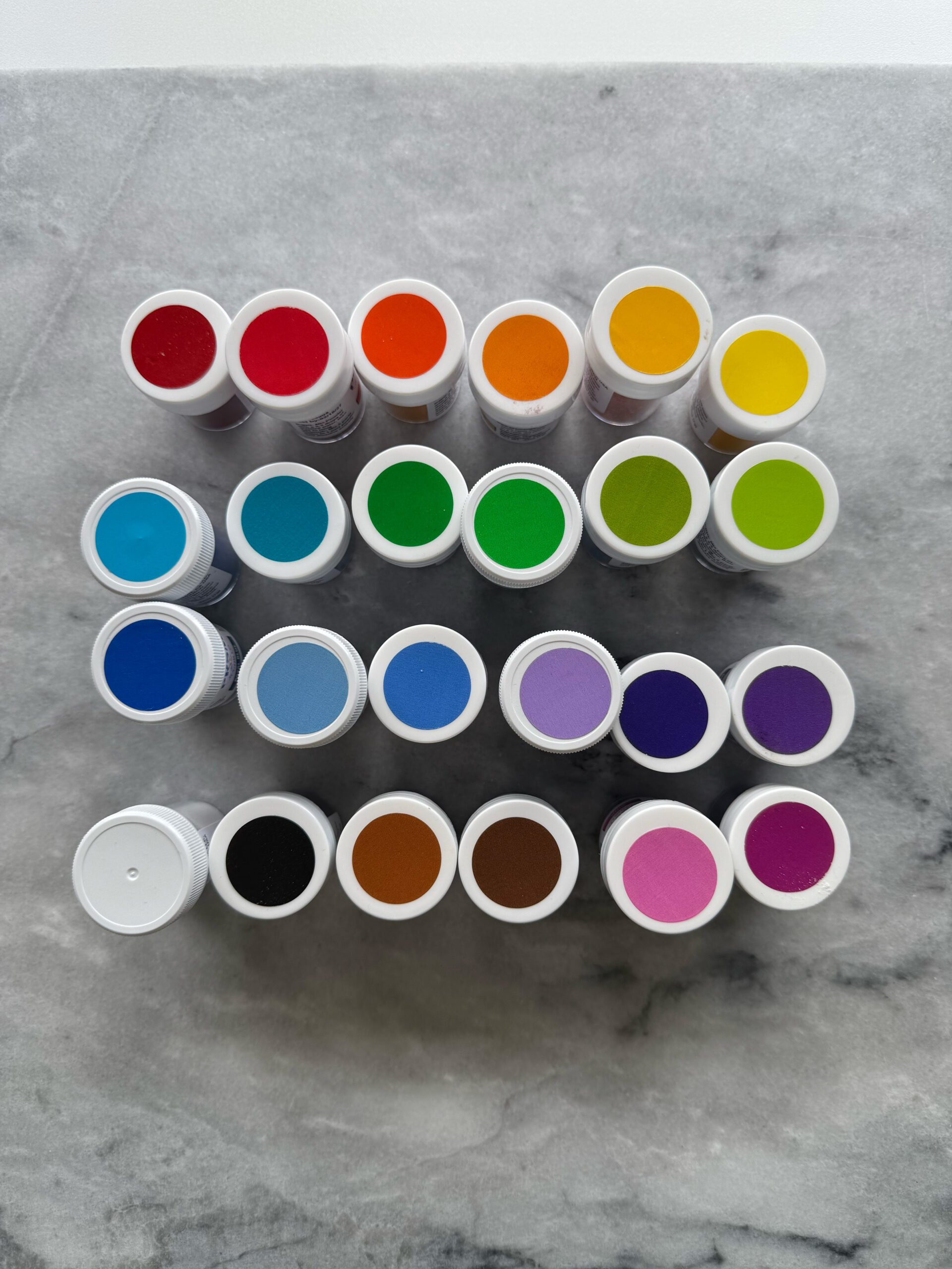 The most popular brand of natural food coloring seems to be PRSM Sugar Co. They offer powder coloring, liquid gel coloring, baking gel coloring, and metallic powders. For my experiments, I bought the full set of 24 powder colors and the full set of 10 liquid gel colors, but for this post, I will just be focusing on the powder colors.