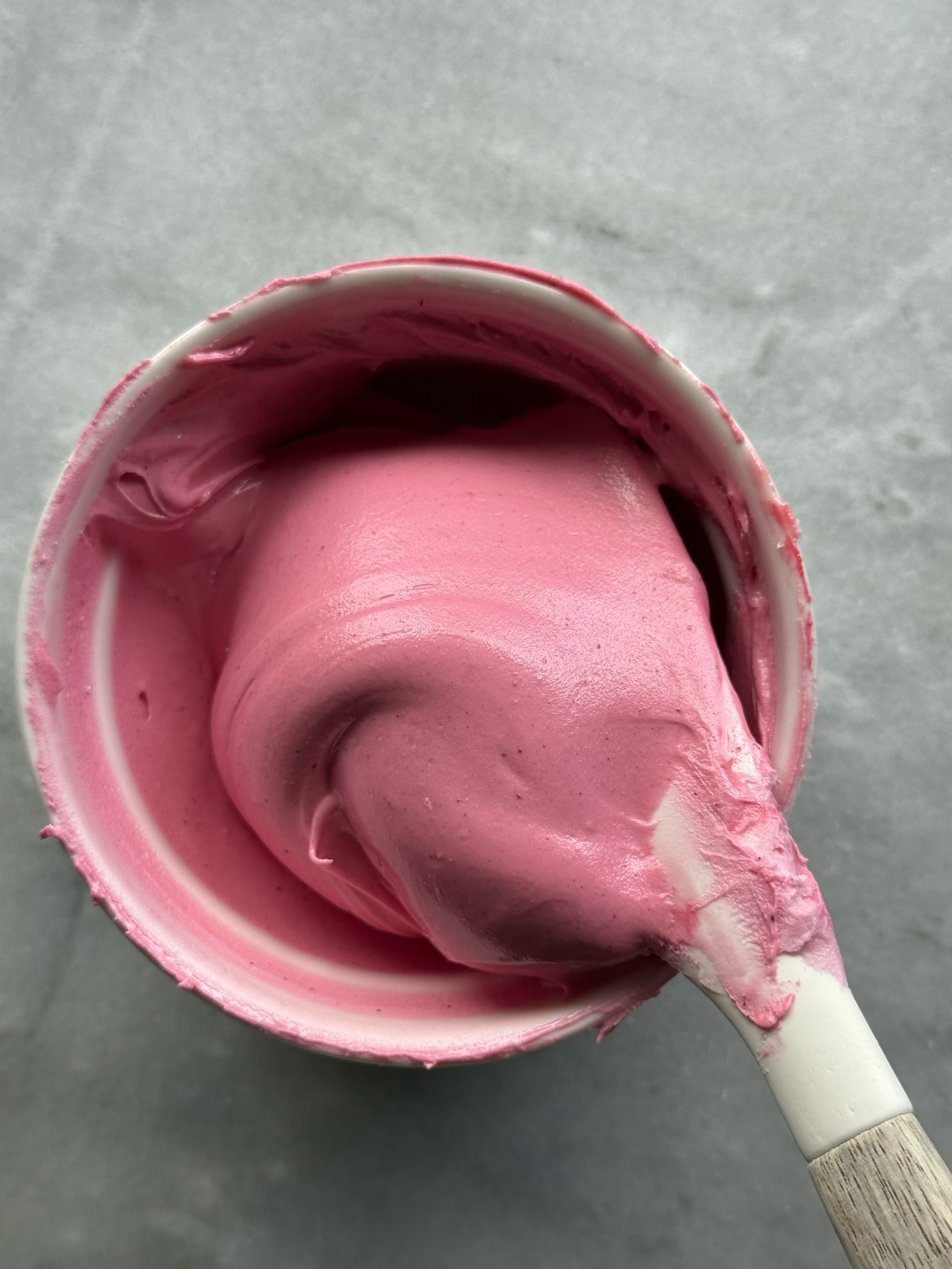 This color has a more raspberry/wine/maroon tone than a true red. It is a beautiful color, and I will be keeping it in my dye-free color kit to use as a deep berry pink or even a cooler-toned pastel pink. For this one, I used ⅛ teaspoon increments- ⅛ teaspoon for light, 2/8 teaspoon (which is ¼ tsp) for medium, and ⅜ teaspoon for deep. This is as much as I would use if you don’t want any strange flavors. You may be able to add a little more if you also add even more extracts to mask the flavor. This color does have a bad taste if you add too much powder.
