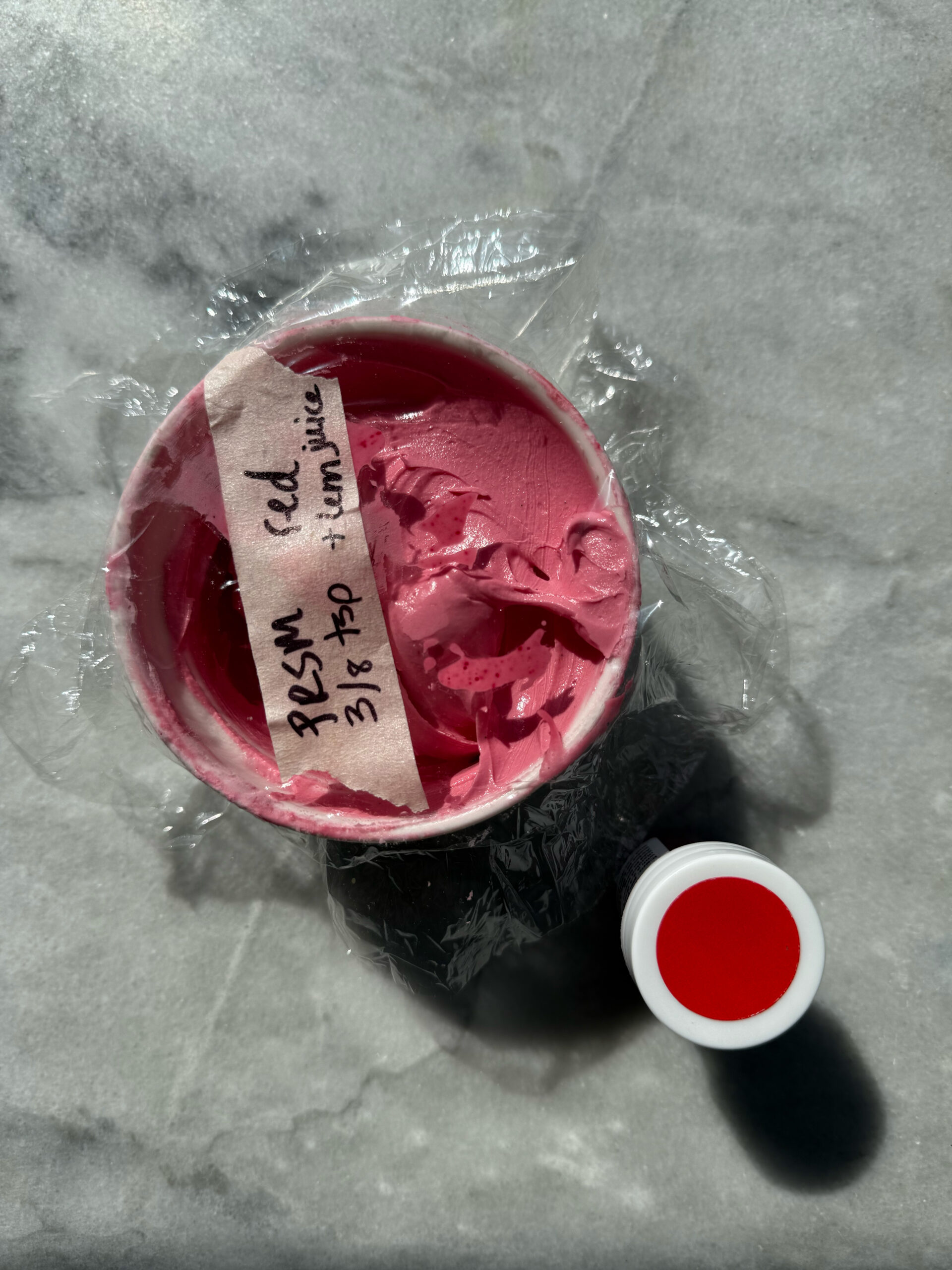 This red is a little warmer than super red, and it also makes a beautiful pink icing. I used the same amounts for this one- ⅛ teaspoon for light, 2/8 teaspoon for medium, and ⅜ teaspoon for deep. There is a taste, but it isn’t extreme and does fade quickly on the tongue. Any more than this, however, and the taste would be too noticeable. I added ¼ teaspoon lemon juice, and the color did brighten and warm up. After 24 hours of developing the color in the bowl, it did deepen quite a bit.