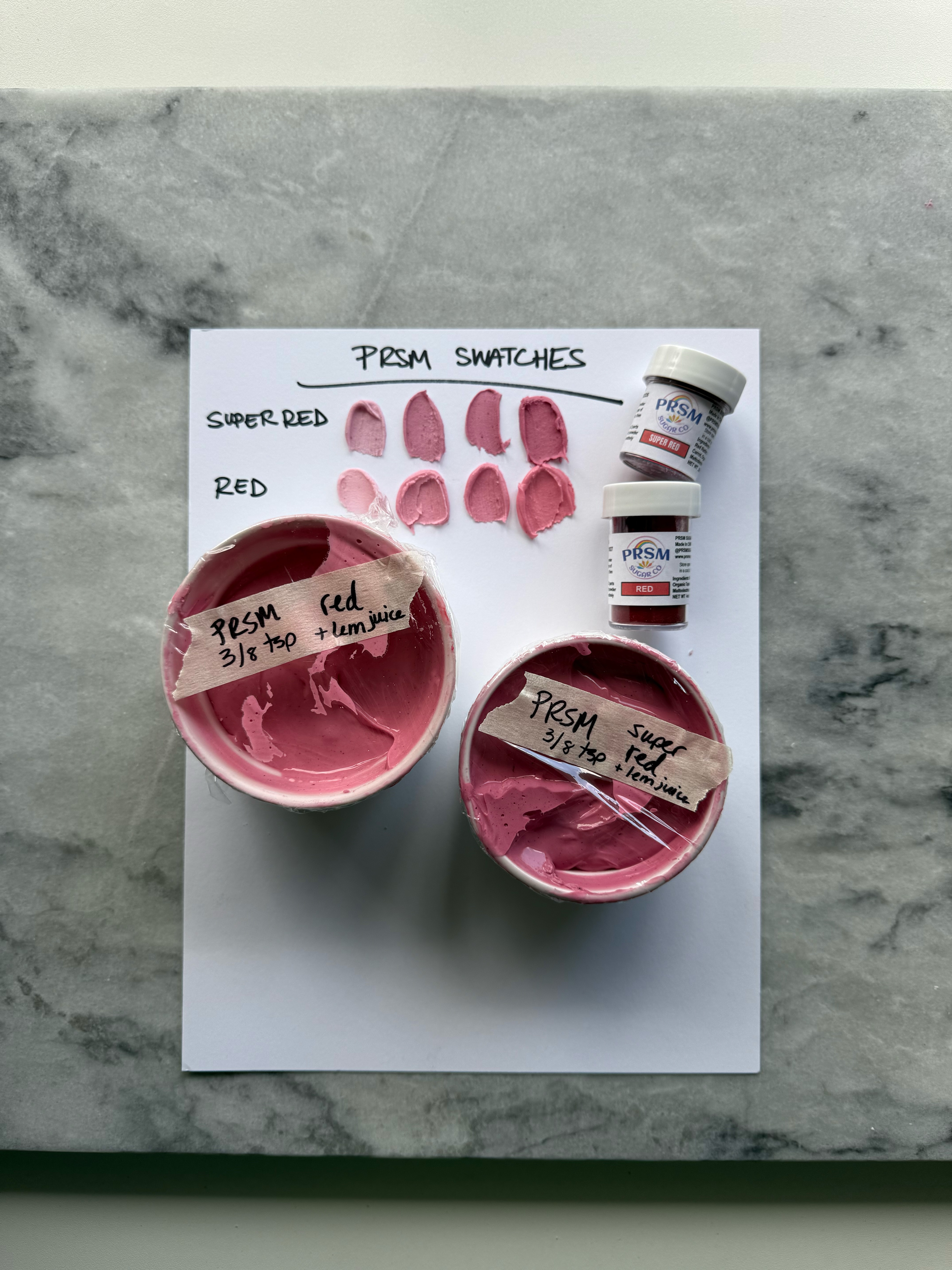 I was extremely impressed with the vibrancy and variation of colors that PRSM was able to get from natural products. The colors are very bright, while I was expecting much more muted tones. They are actually brighter tones than I typically prefer for my icing colors, which is good news for those who love bright colors. If you prefer muted tones, it’s very easy to adjust them with color theory.